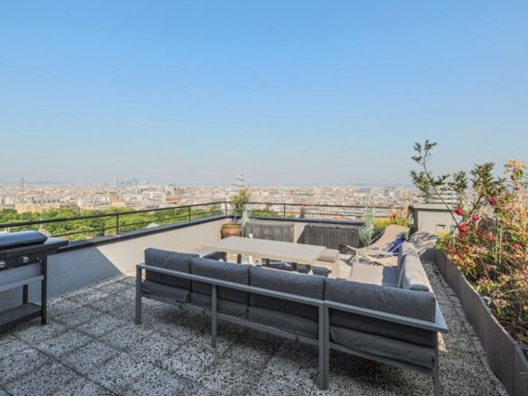 Dernier étage d’un immeuble à Paris intra-muros avec vue panoramique sur Paris.
