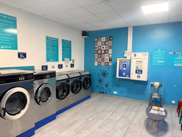 Lieu : Laverie automatique de quartier, ambiance urbaine, machines en libre-service. Décor...