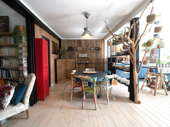 Maison plain-pied atypique Intérieur : – entrée, – salon / séjour avec...