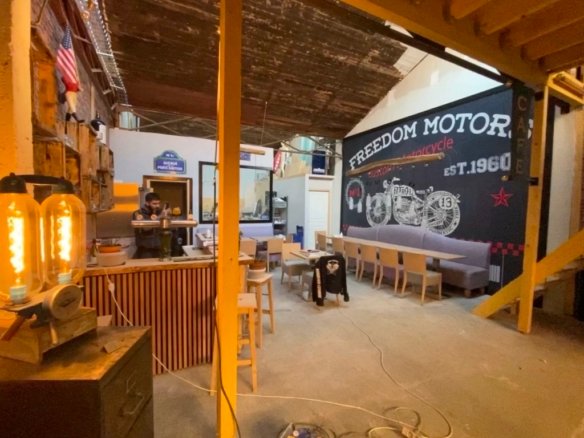 Entrepôt avec une intégration bar à l’américaine “Harley Davidson”