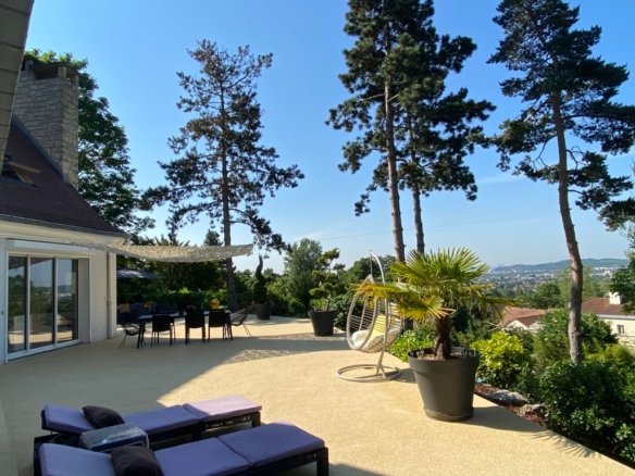 Villa contemporaine RDC : – Salon traversant très lumineux de 80m2 avec...