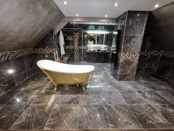Au rez-de-chaussée : – un séjour cathédrale de 45 m² avec poêle...