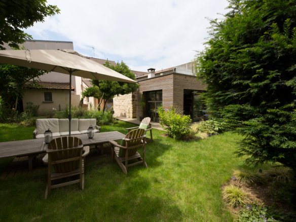 Jolie meulière avec une belle extension en bois très moderne et contemporaine....