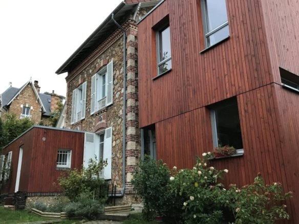 Meulière avec une extension en bois, proche Paris