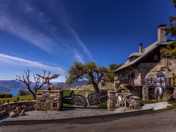 Maison de plain-pied moderne, avec vue dégagée, en hauteur dominante construite sur...