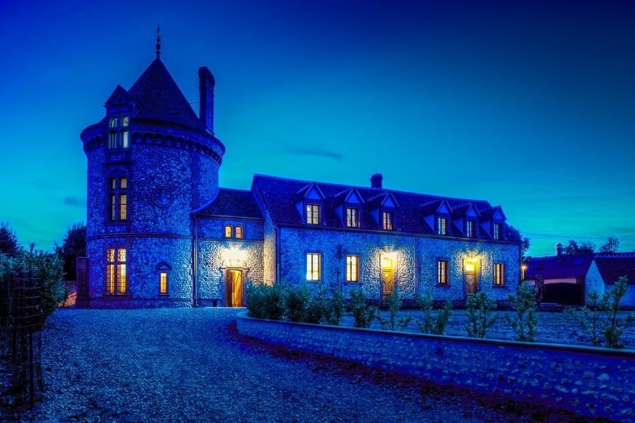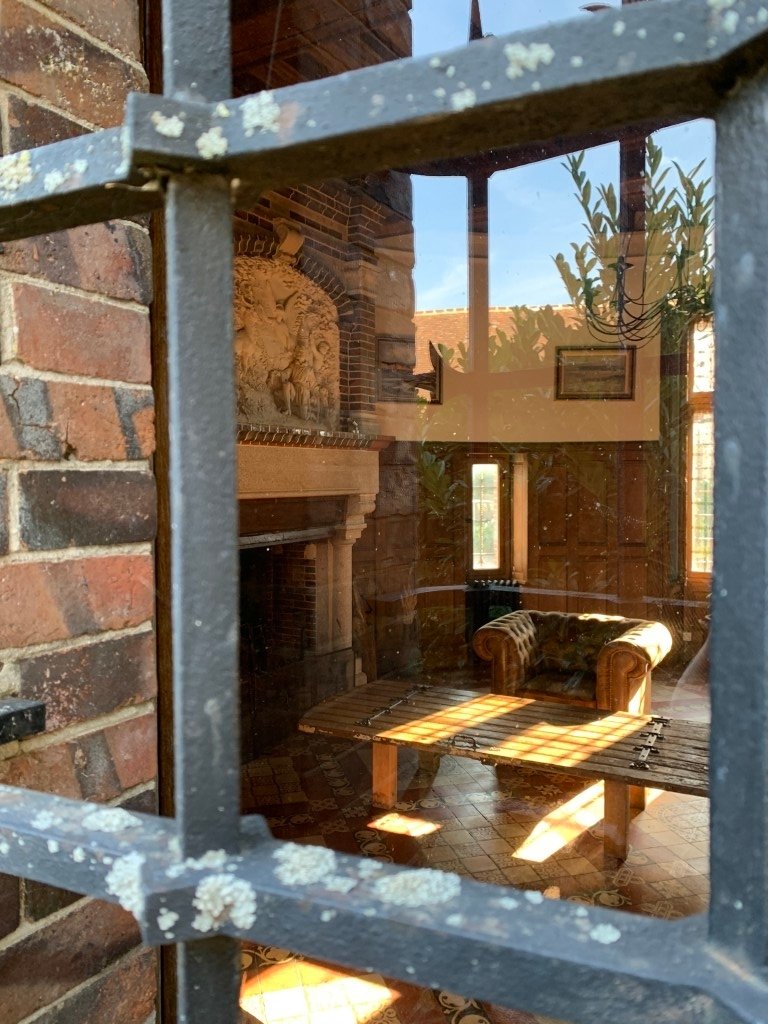 - cheminée d'époque au-dessus de laquelle se trouve un bas-relief en plâtre de l'allégorie de saint Hubert