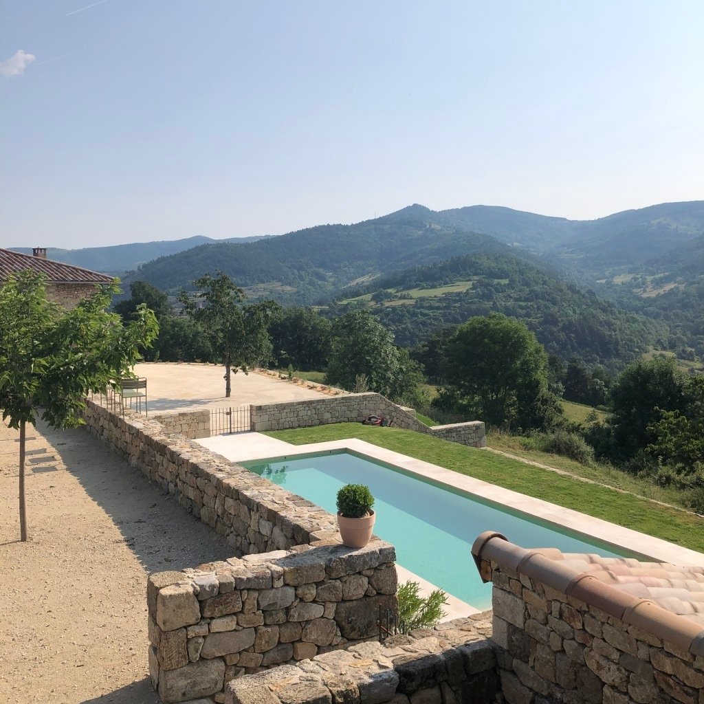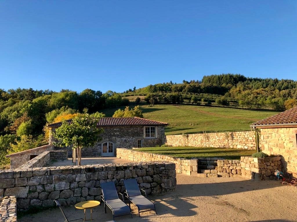 Vue panoramique magnifique pour cette ancienne ferme fortifiée entièrement rénovée avec ancienne grange aménagée et ancienne chèvrerie transformée en chambre.