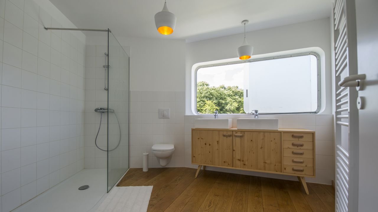 - une salle de douche spacieuse et lumineuse