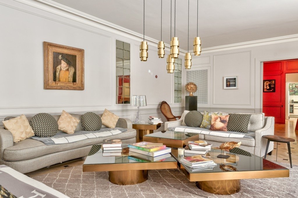L’appartement propose un équilibre subtil entre classicisme et fantaisie, associant le charme de l’architecture historique à des partis pris ultra contemporains.