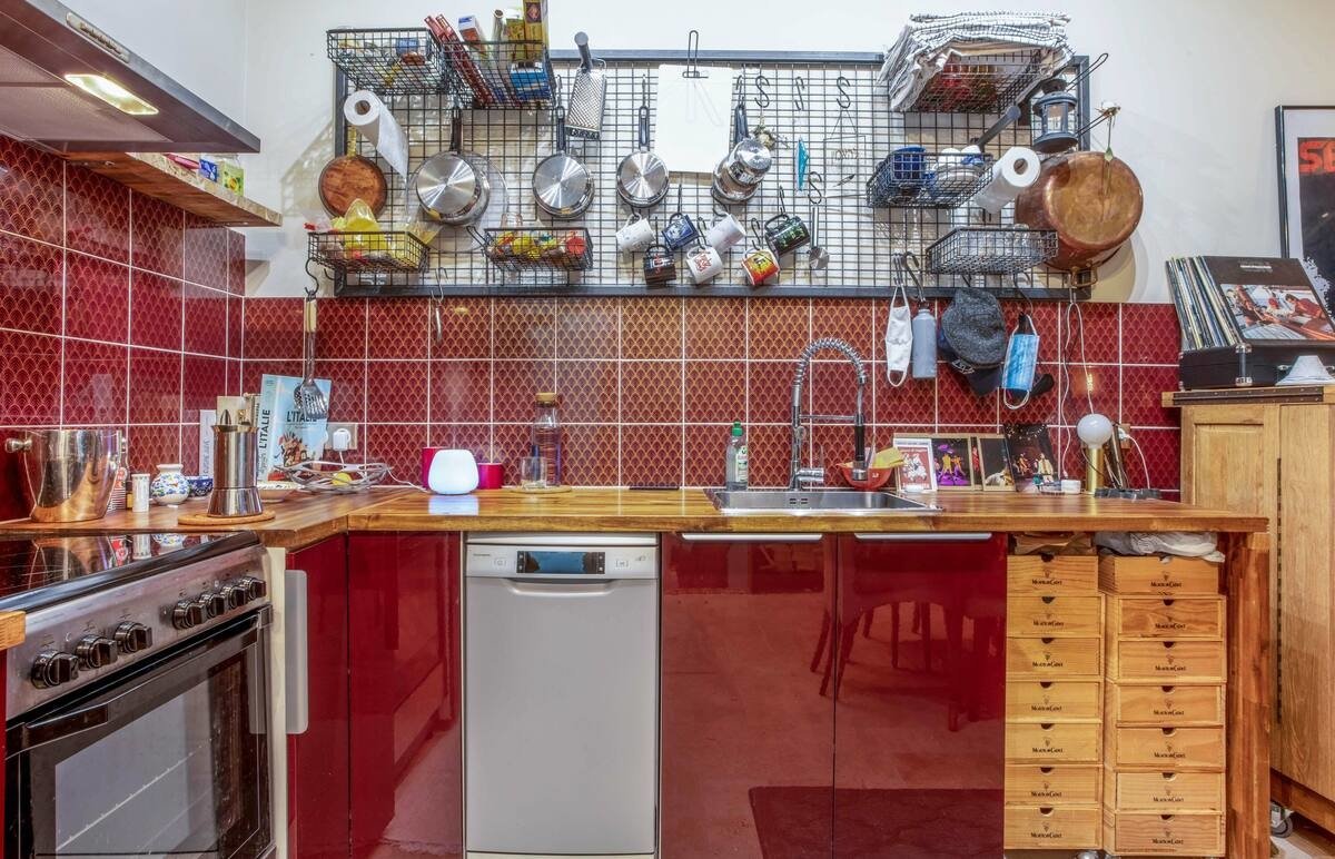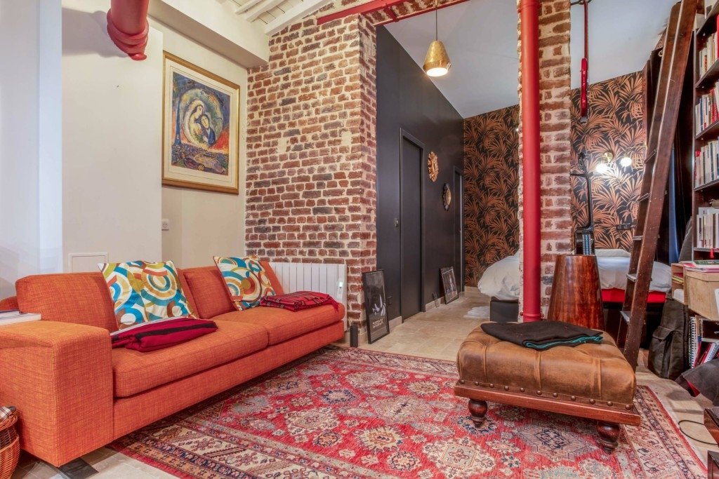 Loft industriel, tout en longueur, avec décoration style New-Yorko-italiano :