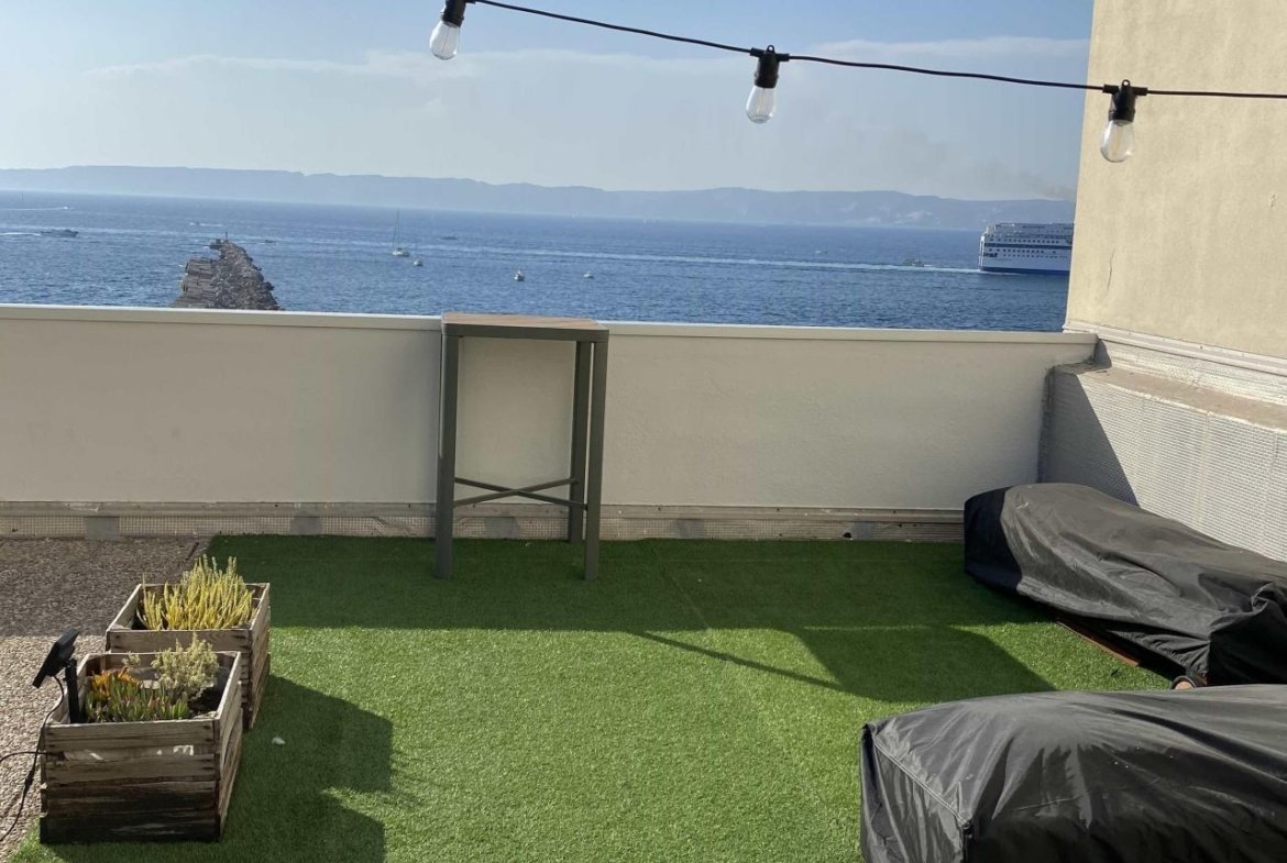 Jardin avec tonnelle naturelle. Et une terrasse panoramique donnant sur les îles du Frioul.
