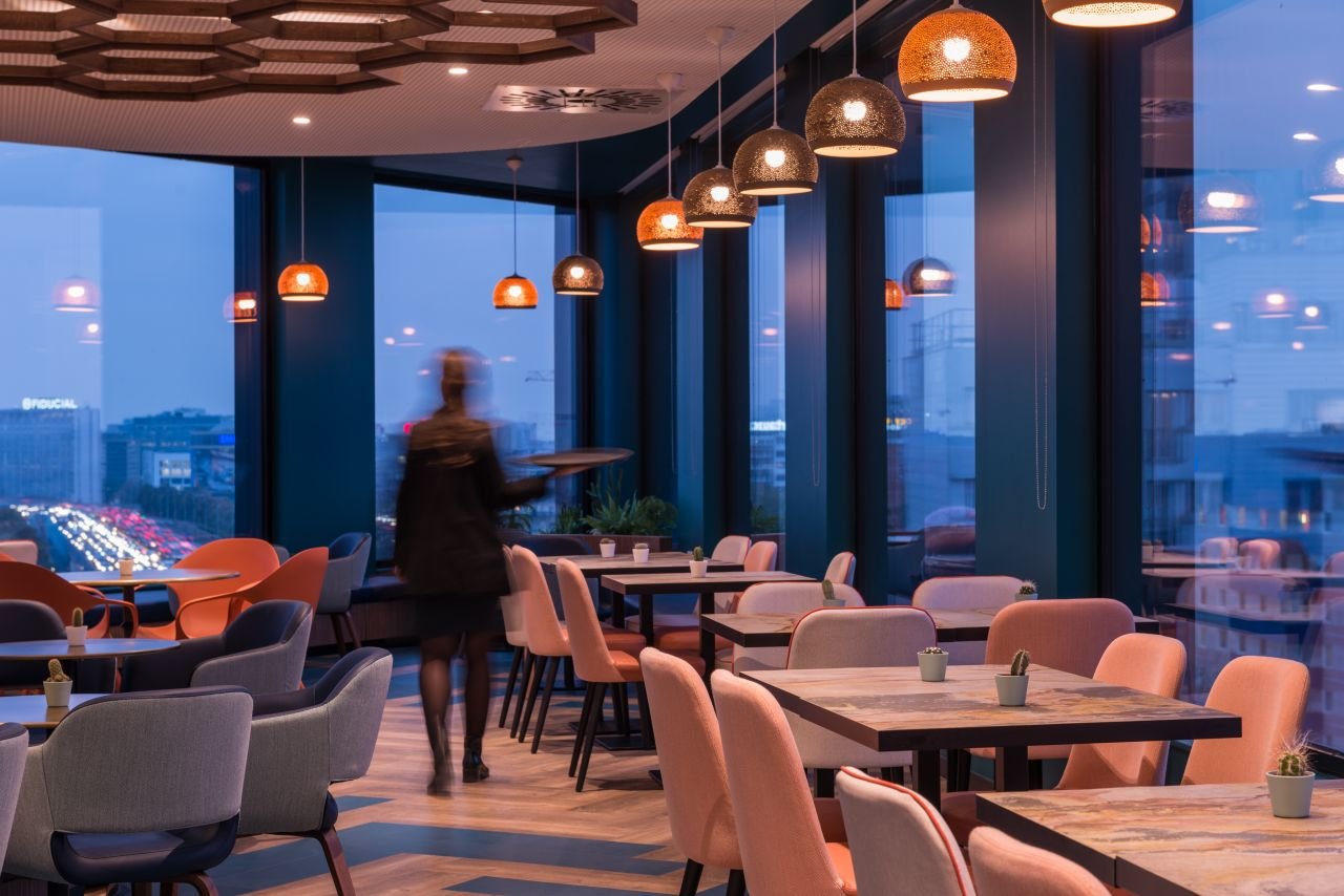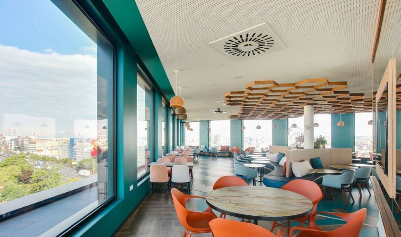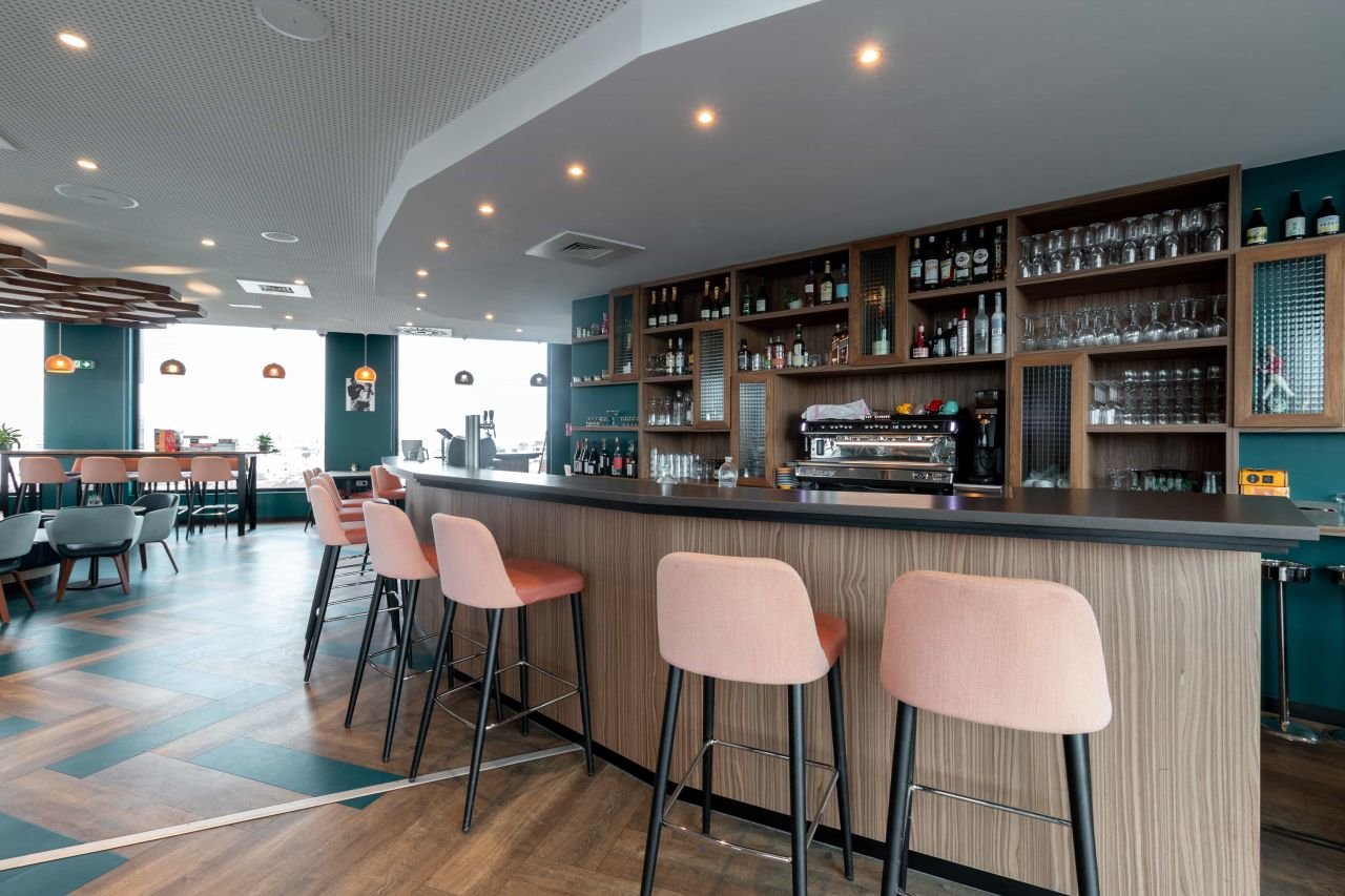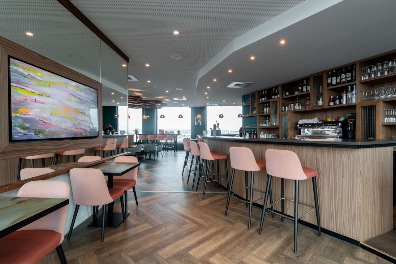 Bar atypique et entièrement panoramique perché au 8ème étage d'un hôtel.