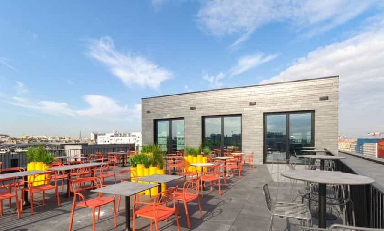 Il dispose d'une terrasse rooftop de 150 m² et d'une vue imprenable sur le Sacré Cœur, le Stade de France et la Tour Eiffel.