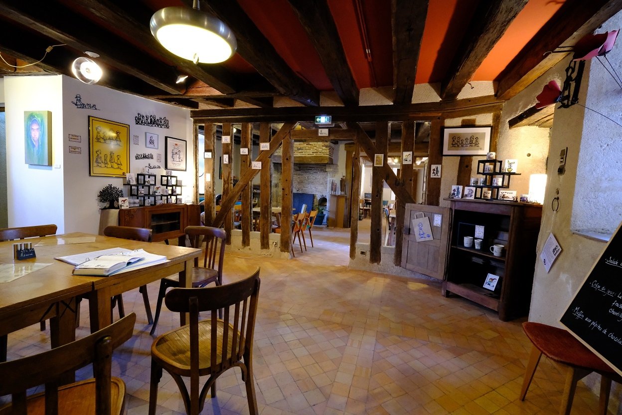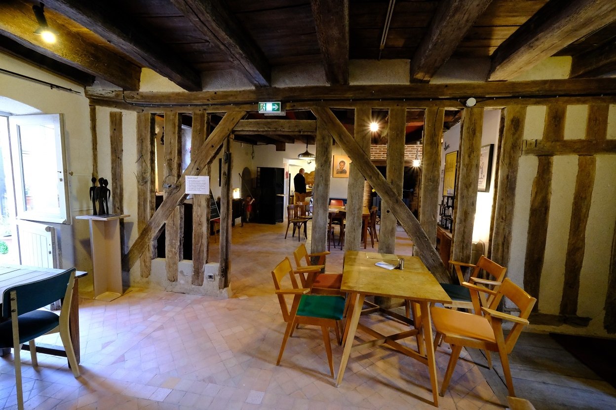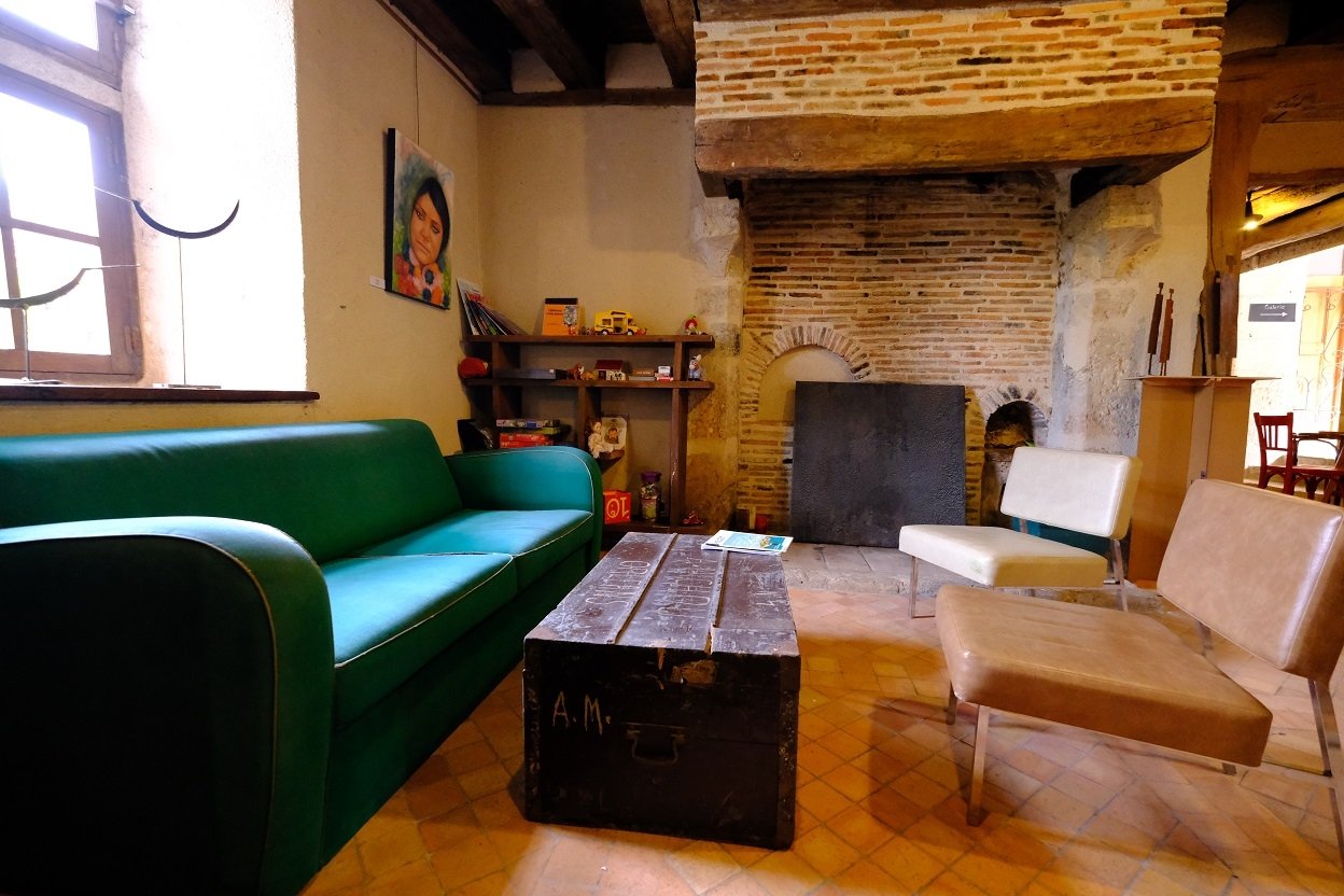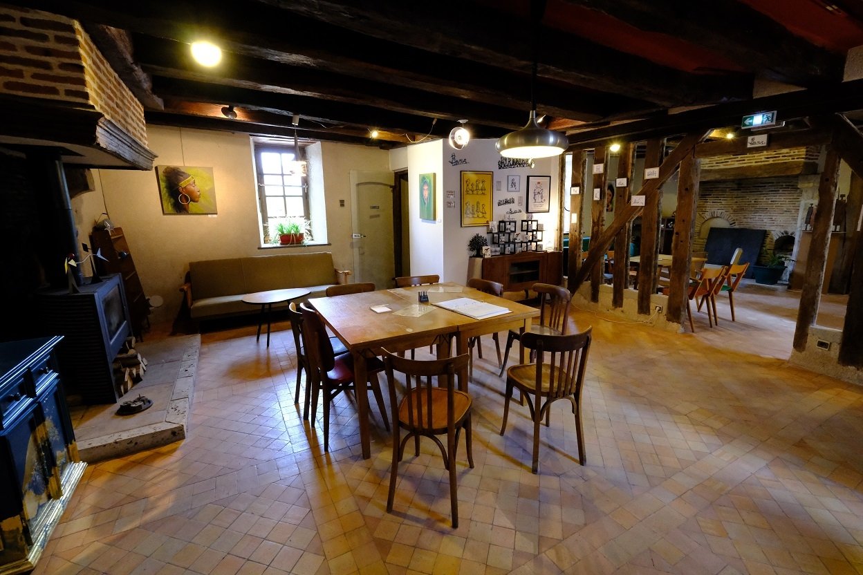 - Deux salles de réception avec cheminée, poêle à bois, poutres, tomettes
