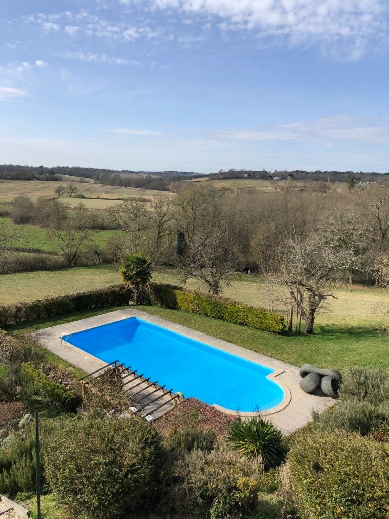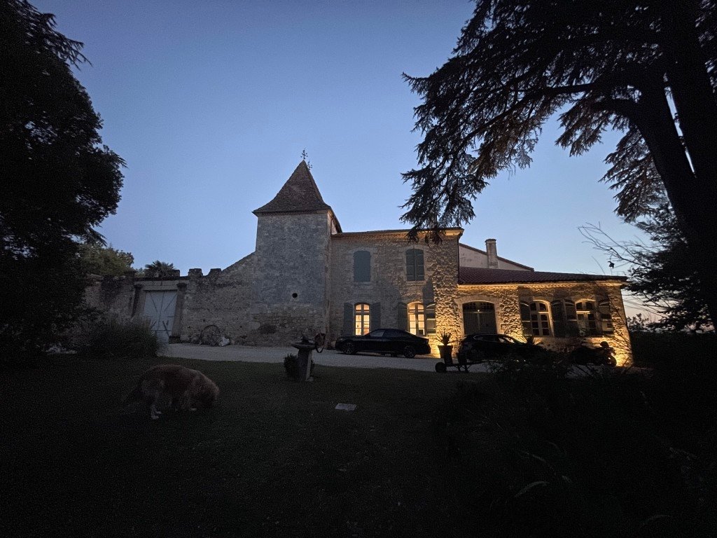 Une cour carrée donnant sur une tour de pigeonnier entourée de 10hectares de vignes d'armagnac et de forêt privée.