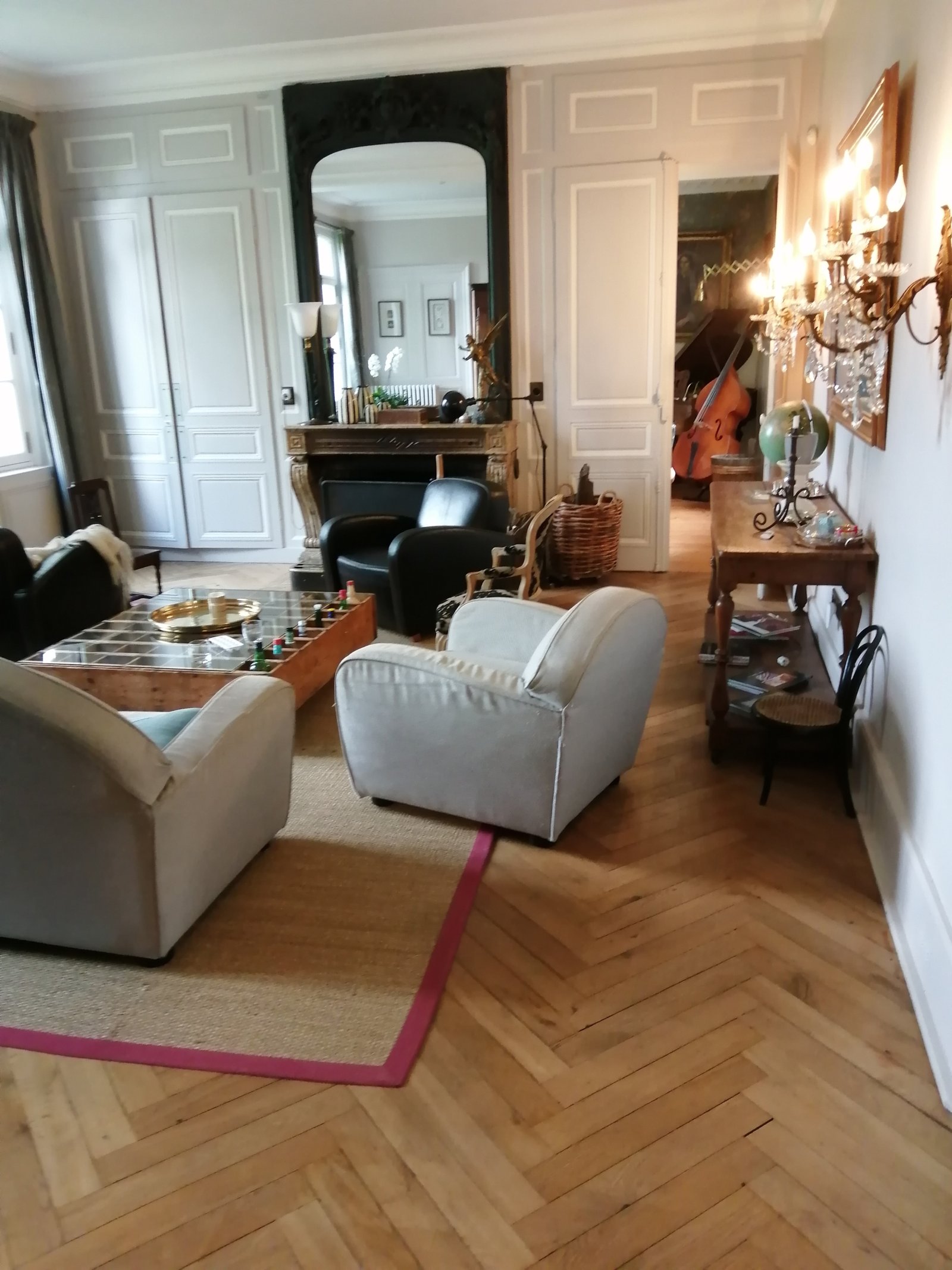 -salon + salle de musique 60 m² (Piano Pleyel, Contrebasse, batterie) + baby foot Bonzini 1952 et billard à bouchons