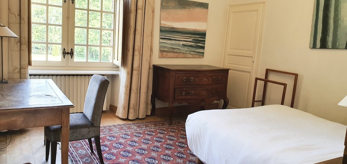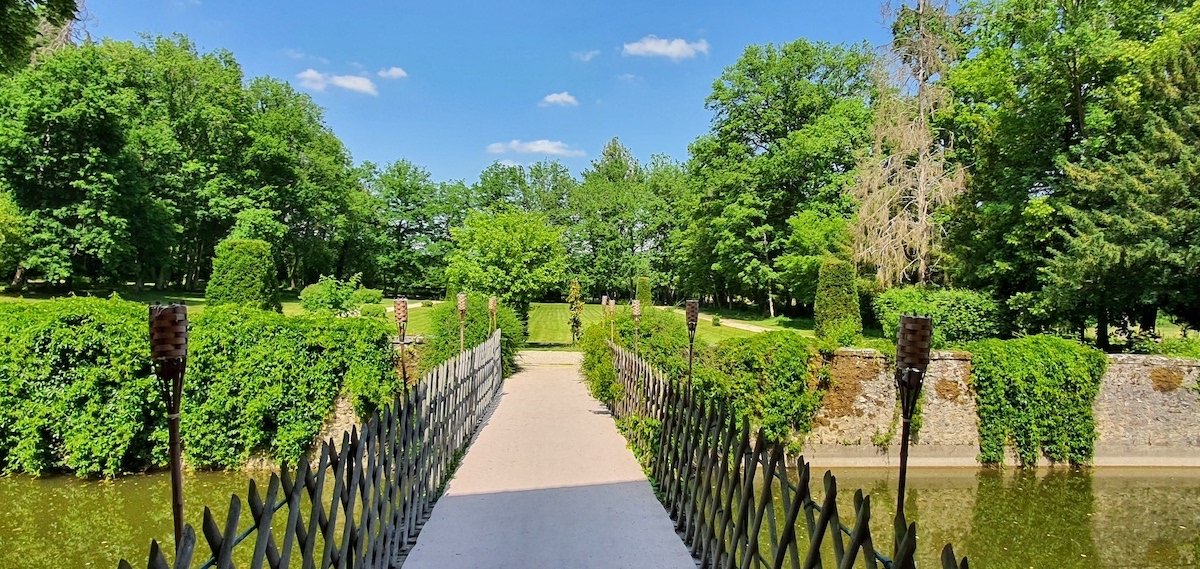 Le parc de 13 hectares offre une belle perspective sur la bâtisse ainsi qu'une grande partie de forêt.