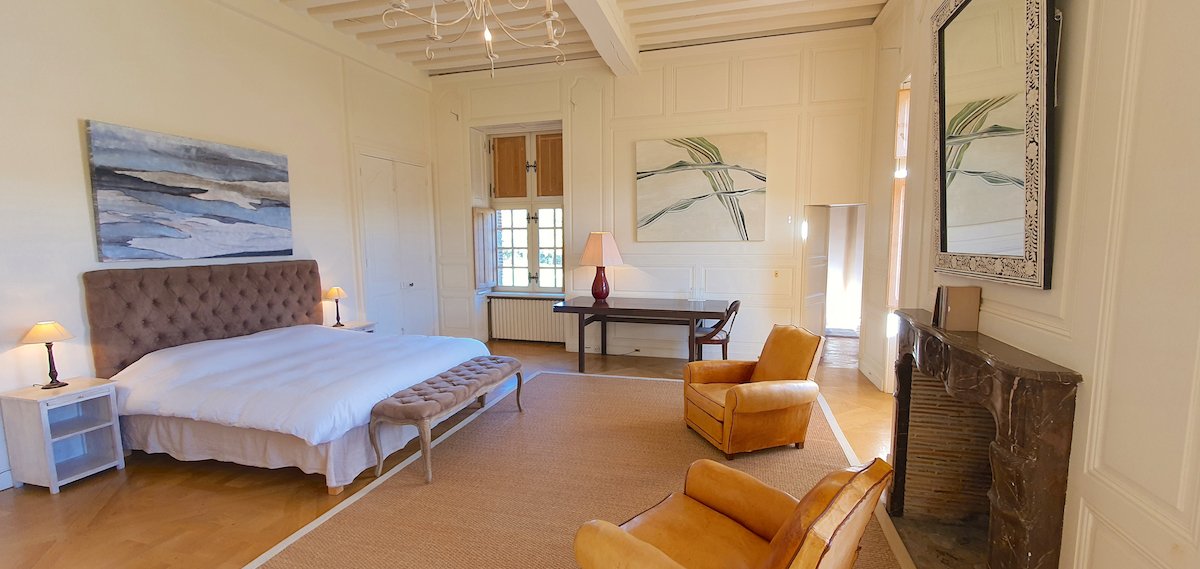 Ce château du 16ème siècle est ceint de douve en eau et décoré dans un style moderne et élégant.