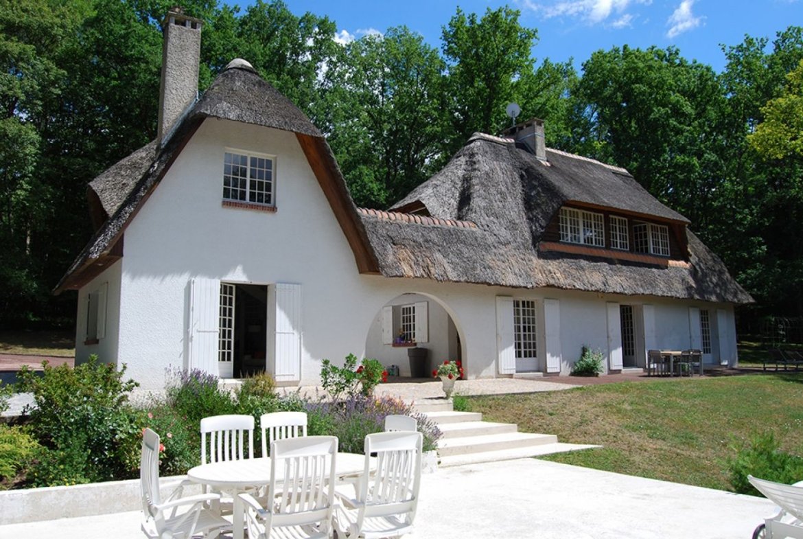 chaumière de 1970, sur propriété de 5 hectares de terrain (prairie et forêt), isolée, bordée par une rivière.