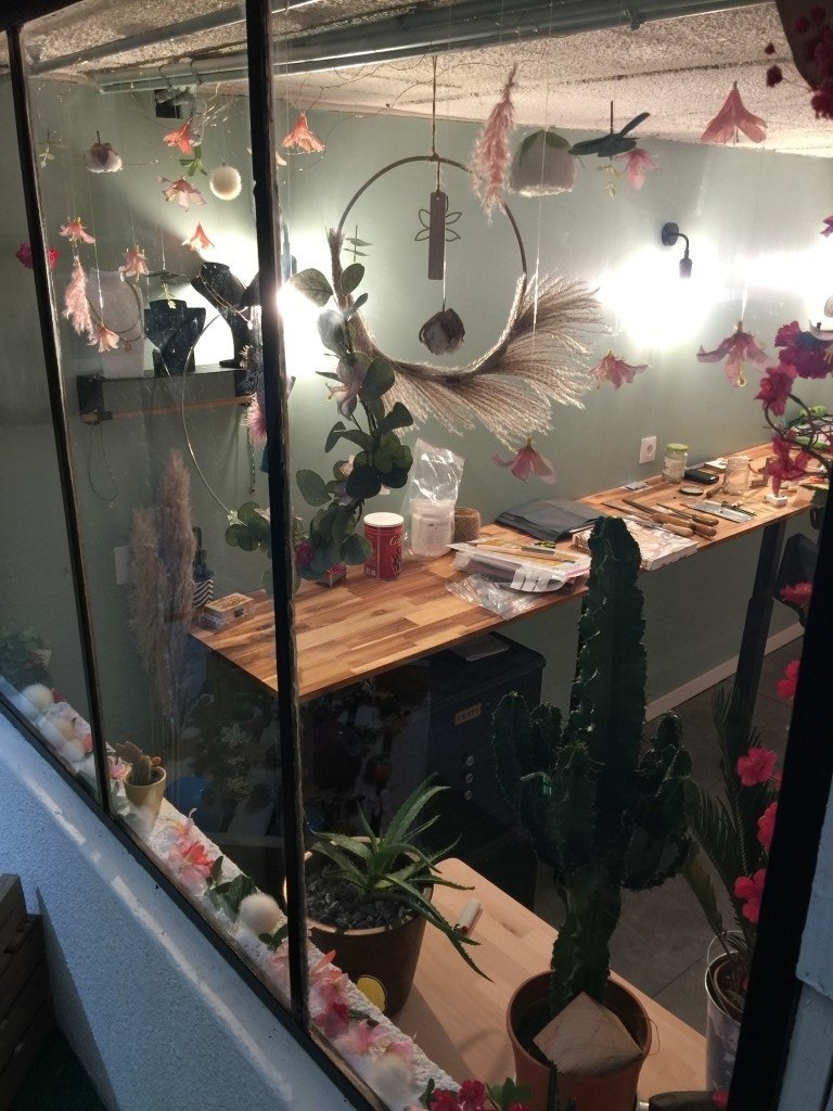 - une pièce transformée et rénovée en atelier de créateur de bijoux d’environ 15 m2