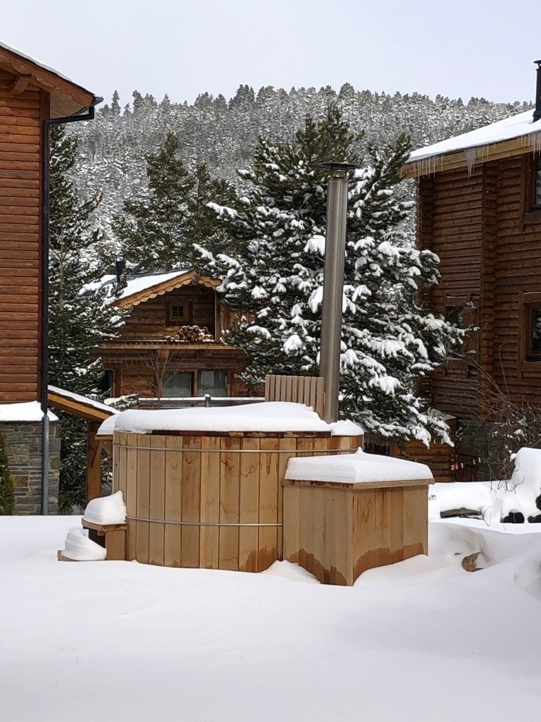 Deuxième chalet : salon de 35 m², trois chambres dont une en mezzanine et deux salles de bain