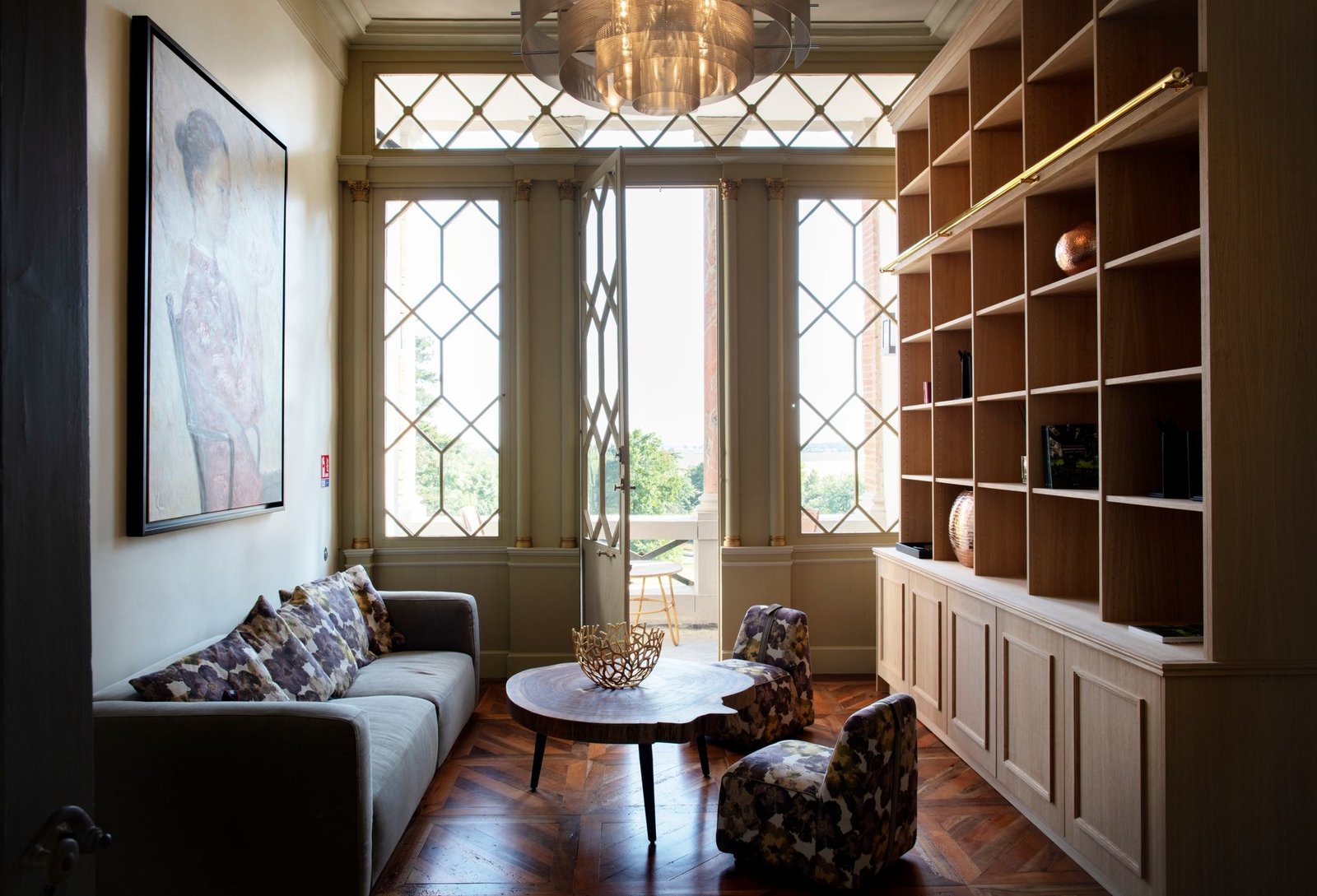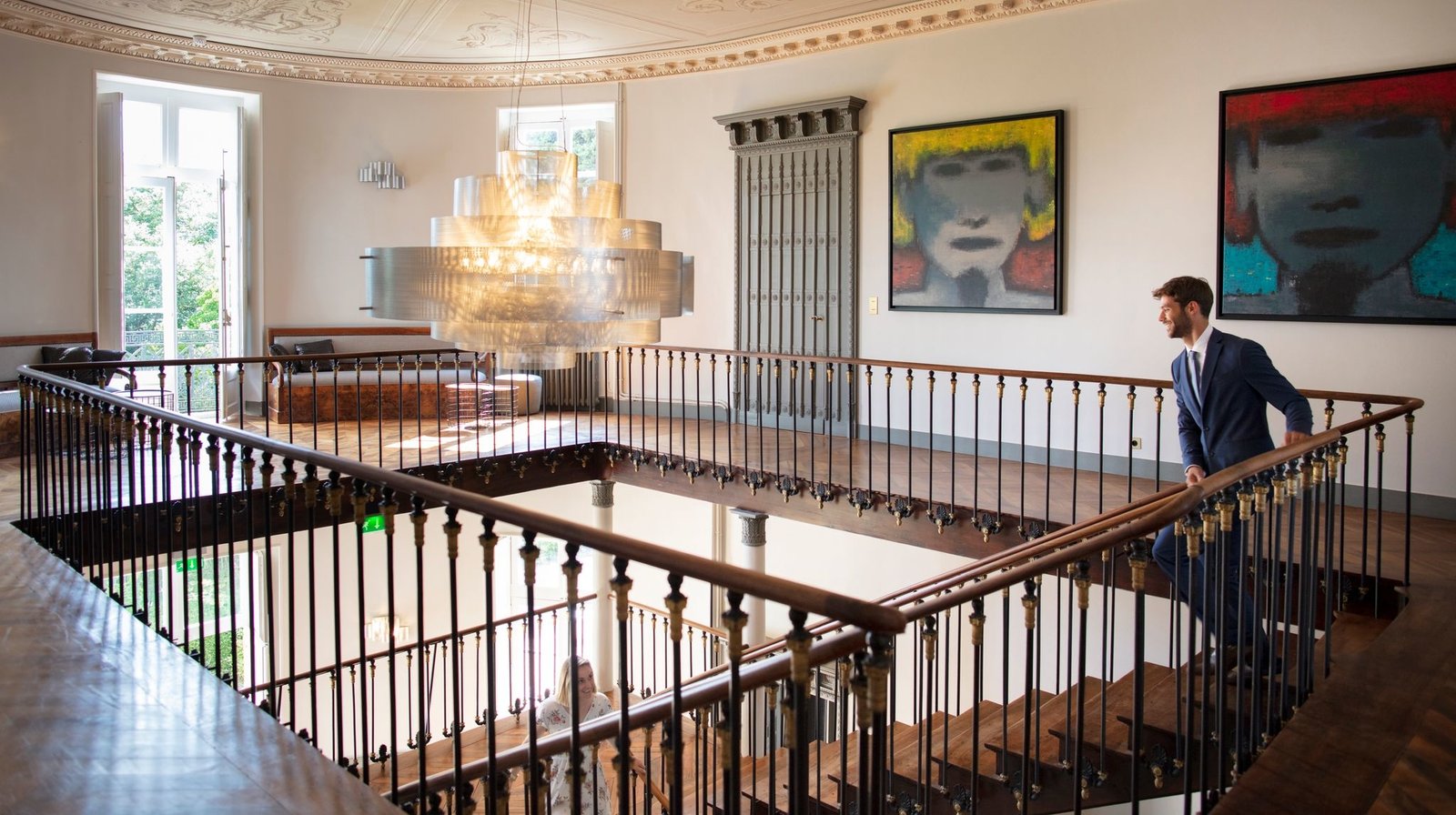 RDC avec escalier révolution, 5 salons, cuisine et bar