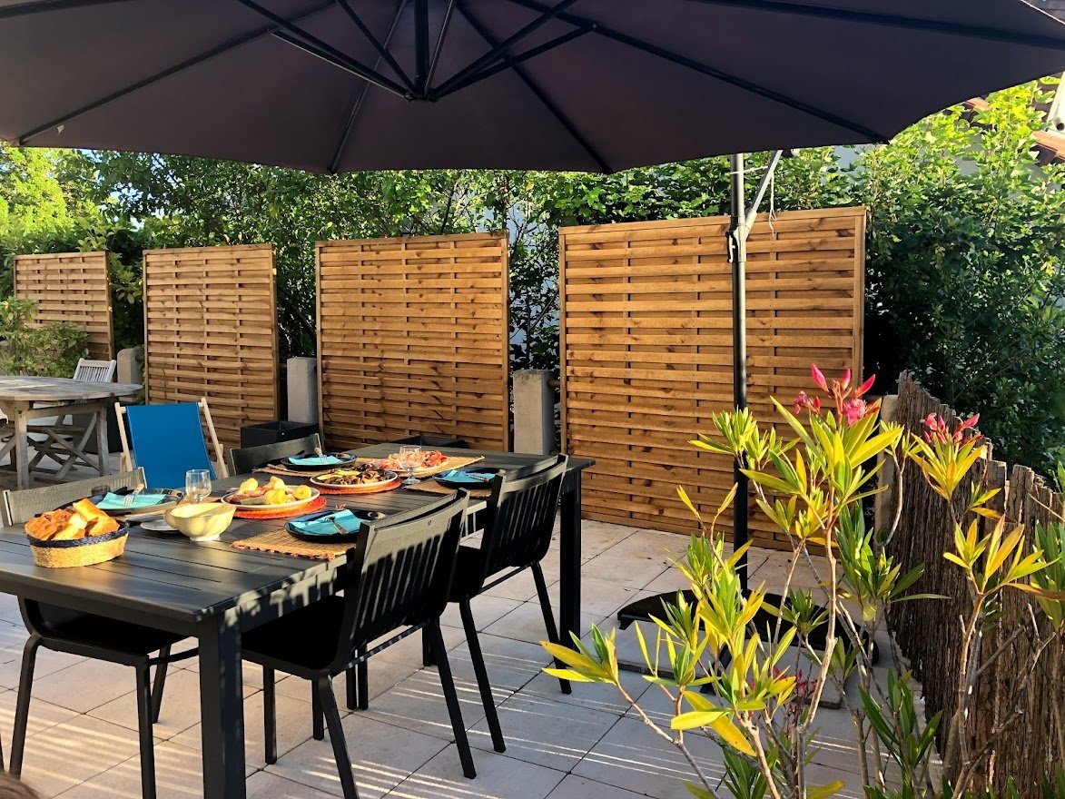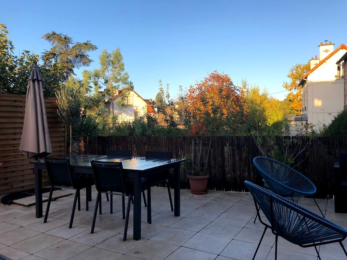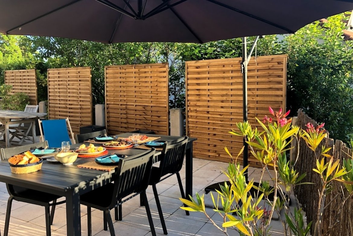 Duplex de 140 m² dans maison en copropriété, 2 niveaux de 70 m² avec terrasse de plain pied de 65 m² et garage de 20 m² sur terrain de 400 m²