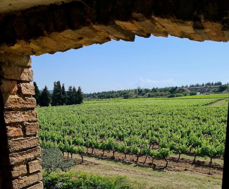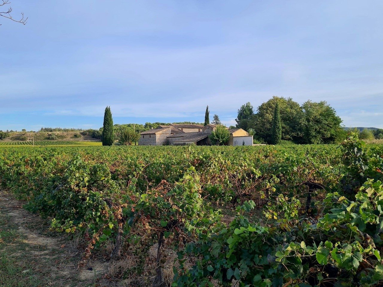 La surface totale est de 400m2 sur un jardin de 2500m2 niché au milieu des vignes