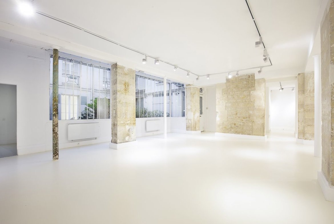 L'espace de 240 m² se situe au rez-de-chaussée d’un immeuble parisien typique bordé d’une cour ombragée et joliment arborée.