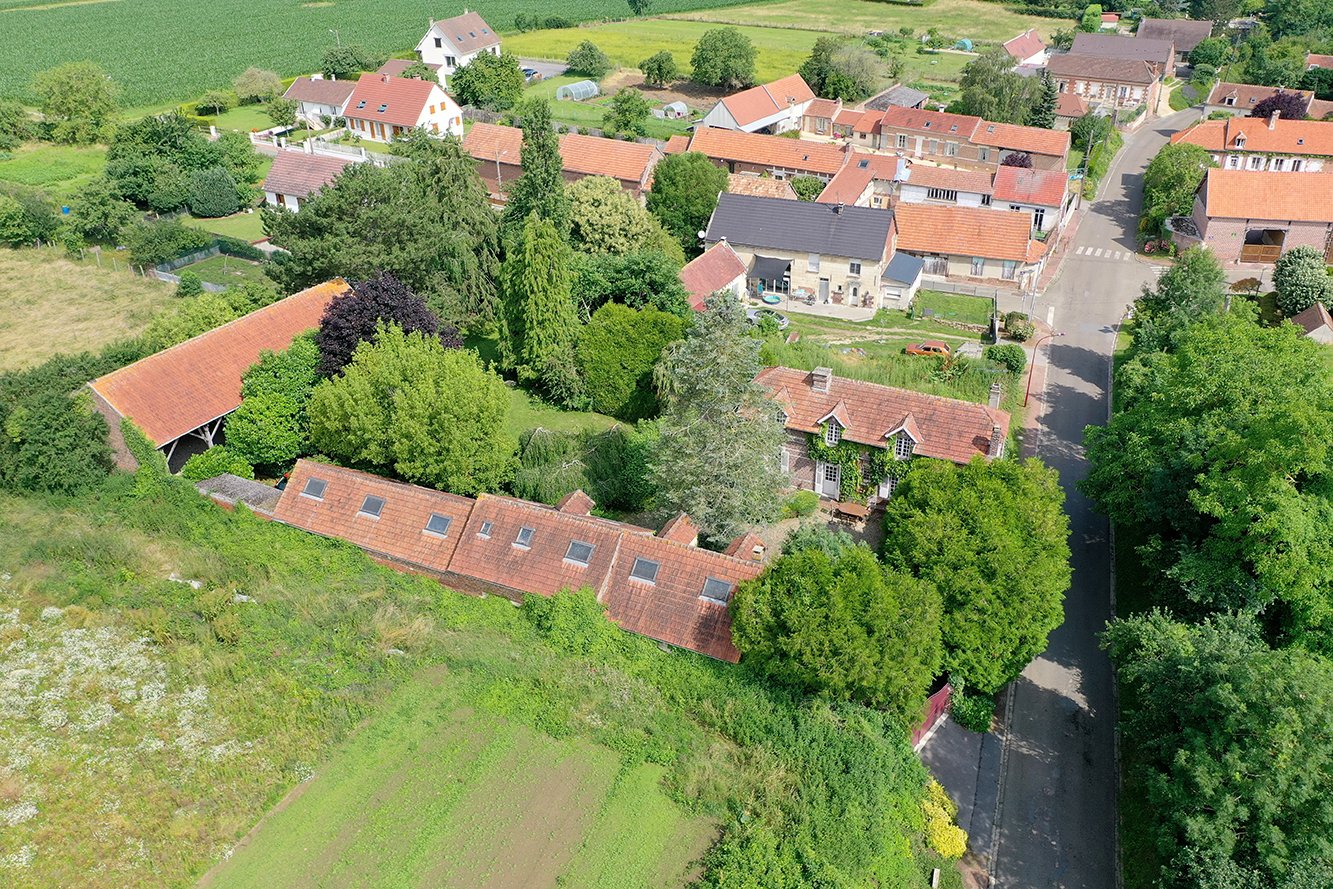 La maison a aussi un très grand jardin avec de nombreux arbres et fleurs, et un hangar ouvert.