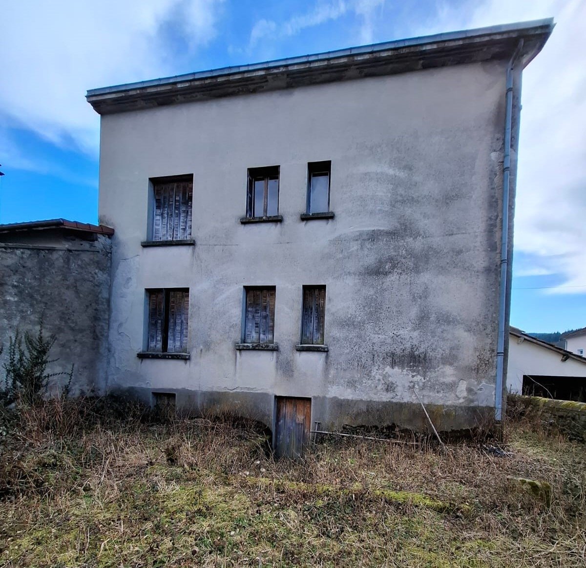 Petit immeuble résidentiel construit en 1955 et inhabité depuis plus de 15 ans. Entre Lyon et Clermont Ferrand. Il est composé d'une cave et de 3 niveaux d'habitation désaffectés.