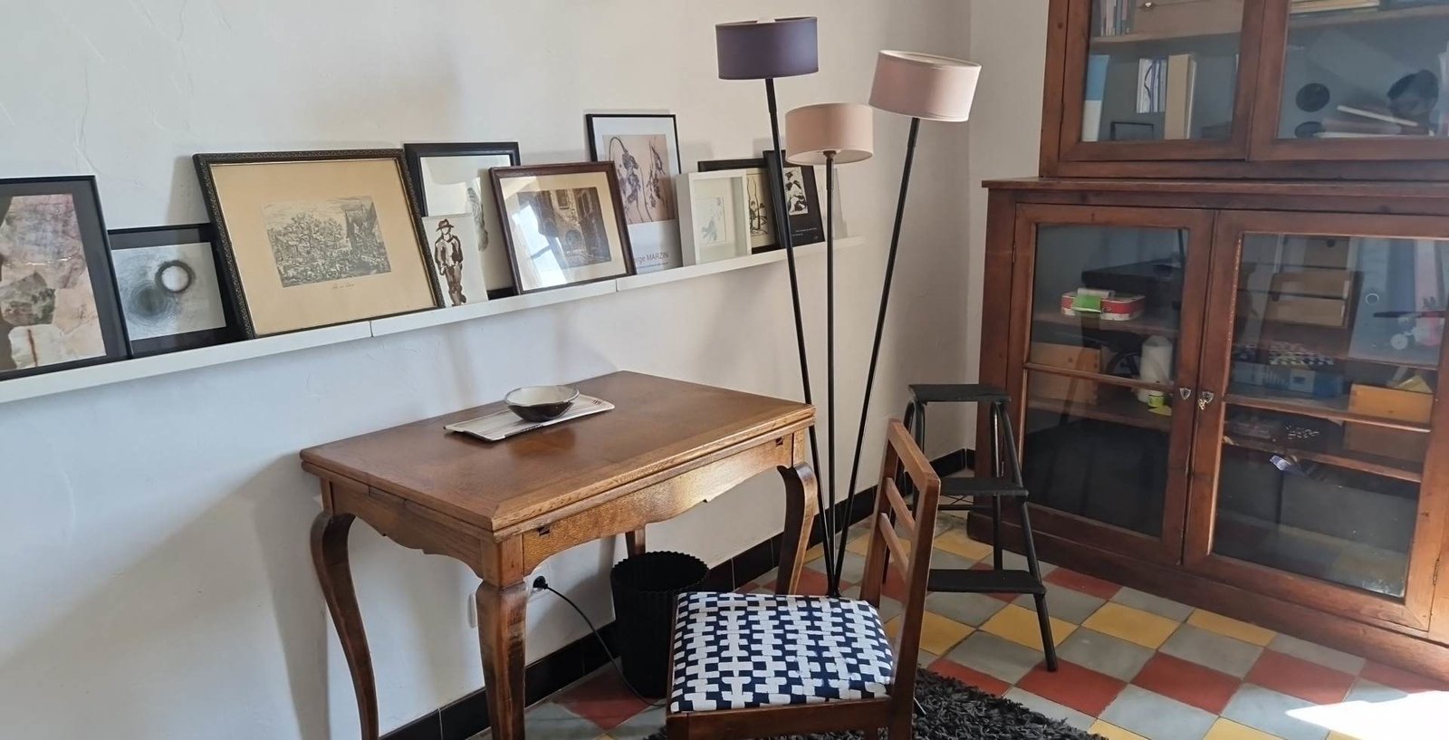 1 bibliothèque bureau - 22 m2 avec petit escalier et porte fenêtre donnant sur la rue