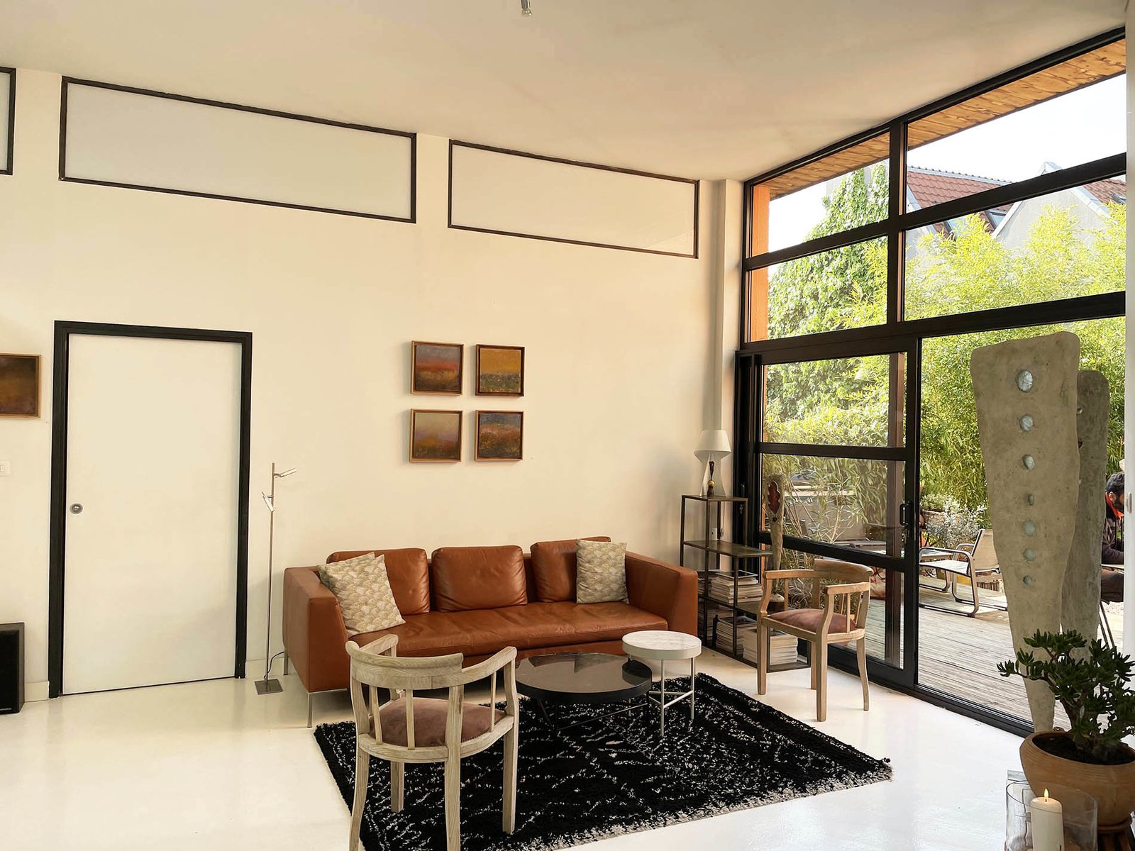 Cet ensemble au rez- de- chaussée est également une galerie d’art qui fait partie de l’espace de vie.