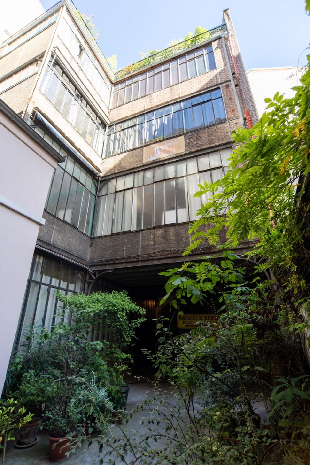 Les grandes verrières, triplement exposées, donnent intégralement sur cour et offrent une belle vue sur le ciel et les toits parisiens.