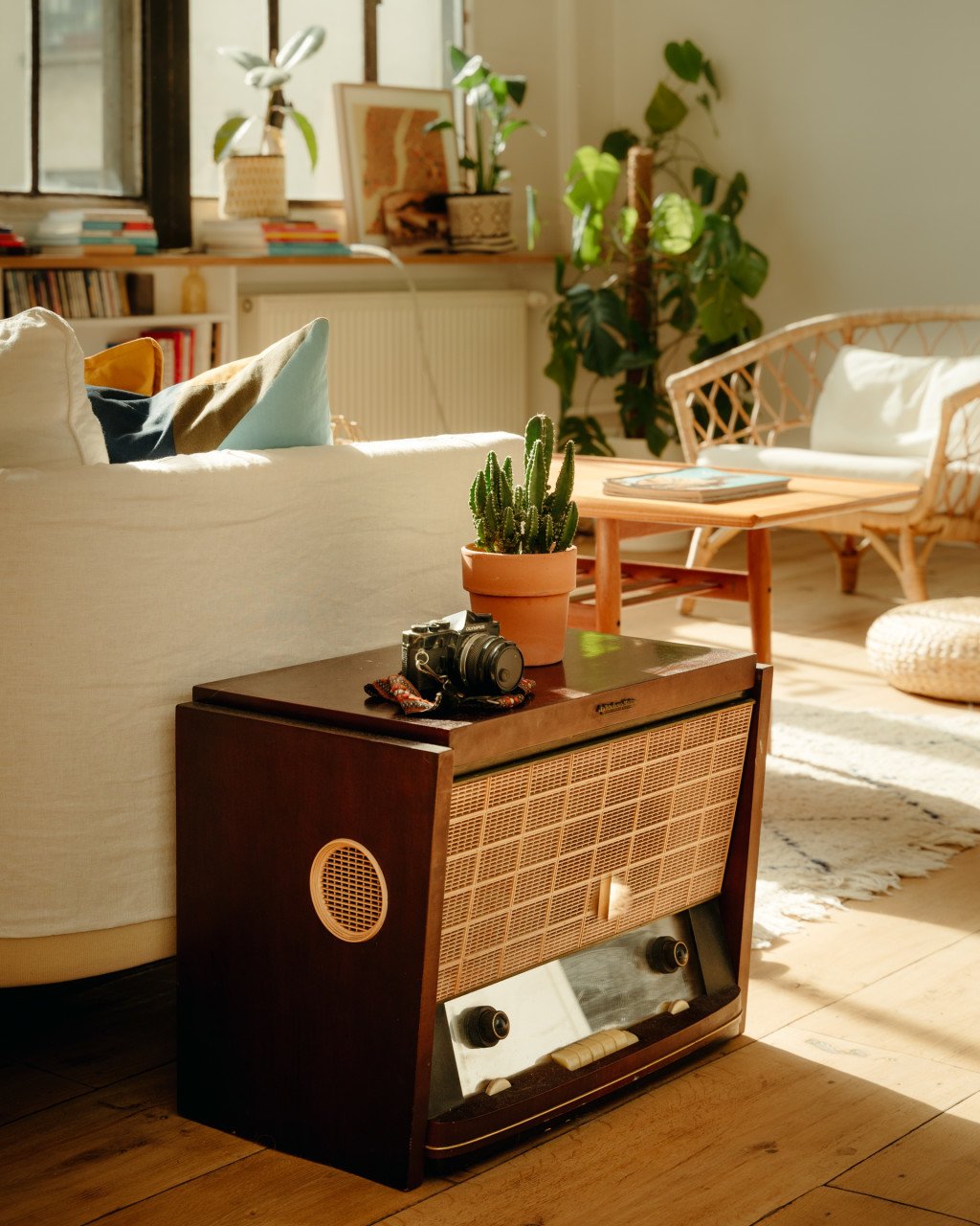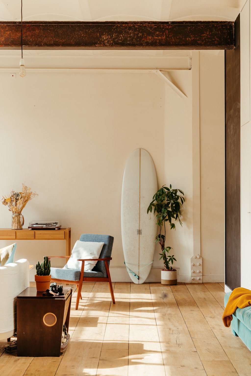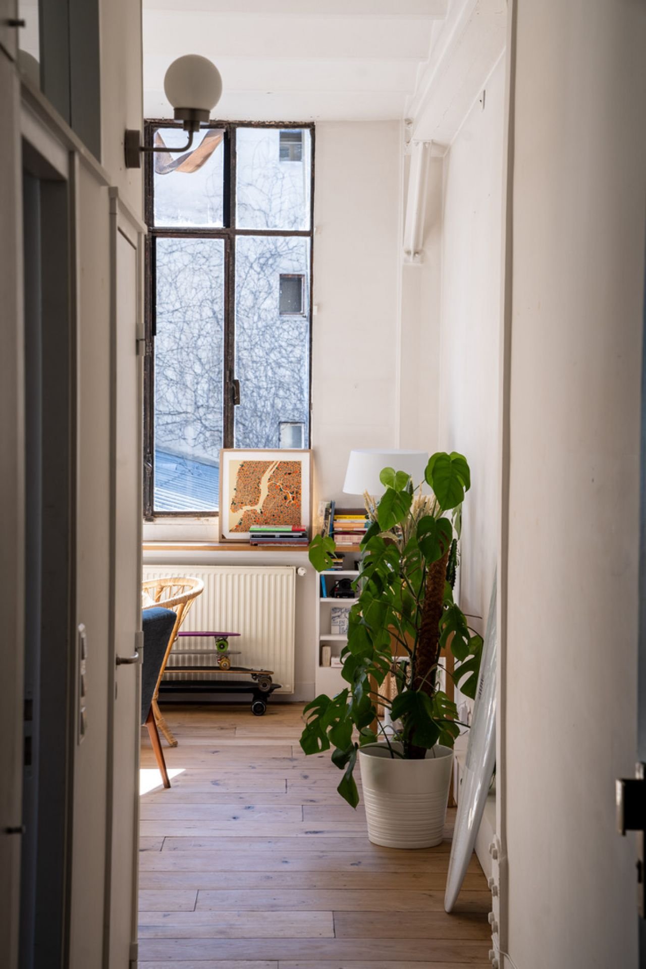 Baigné de lumière, haut de plafond, le loft est niché dans une ancienne imprimerie.