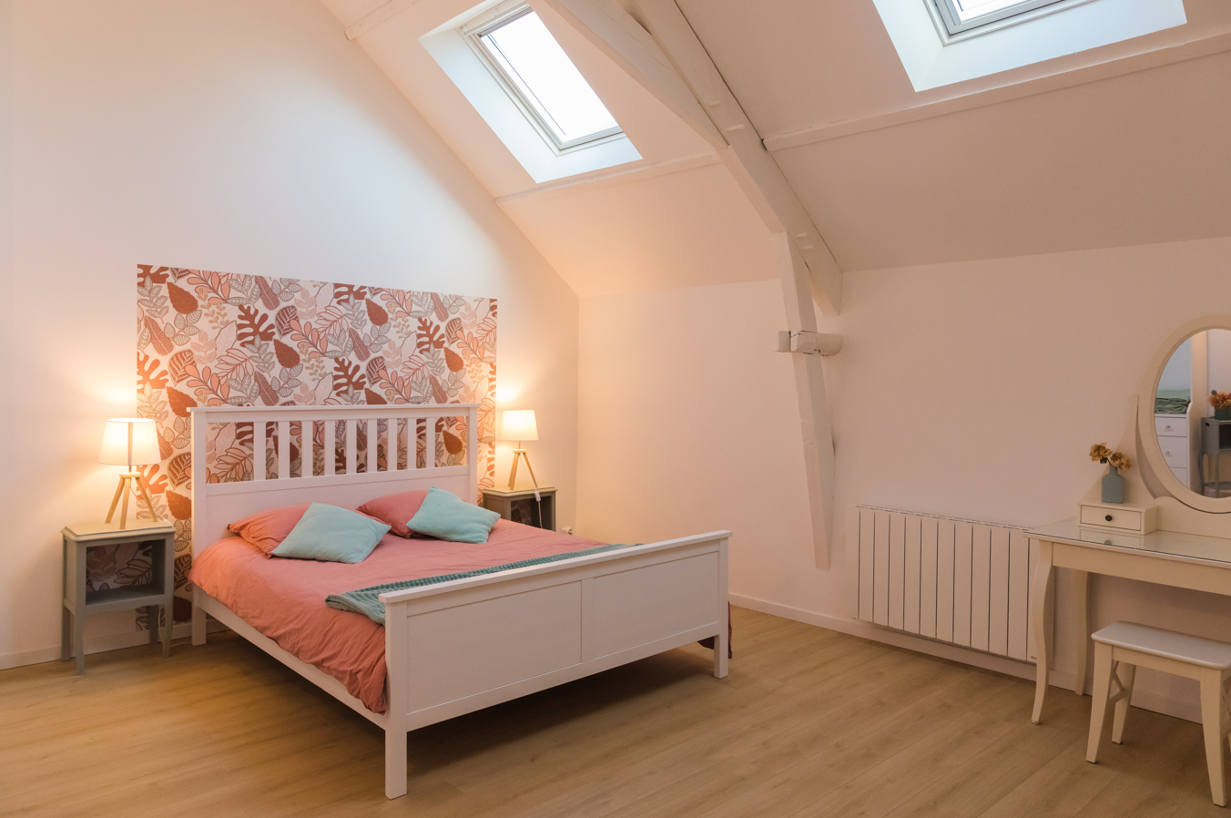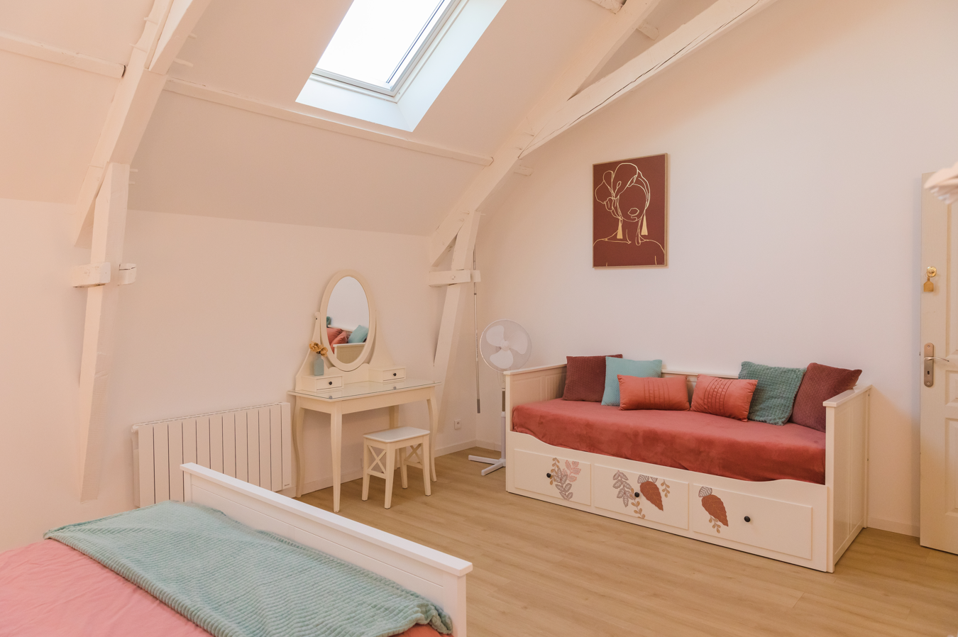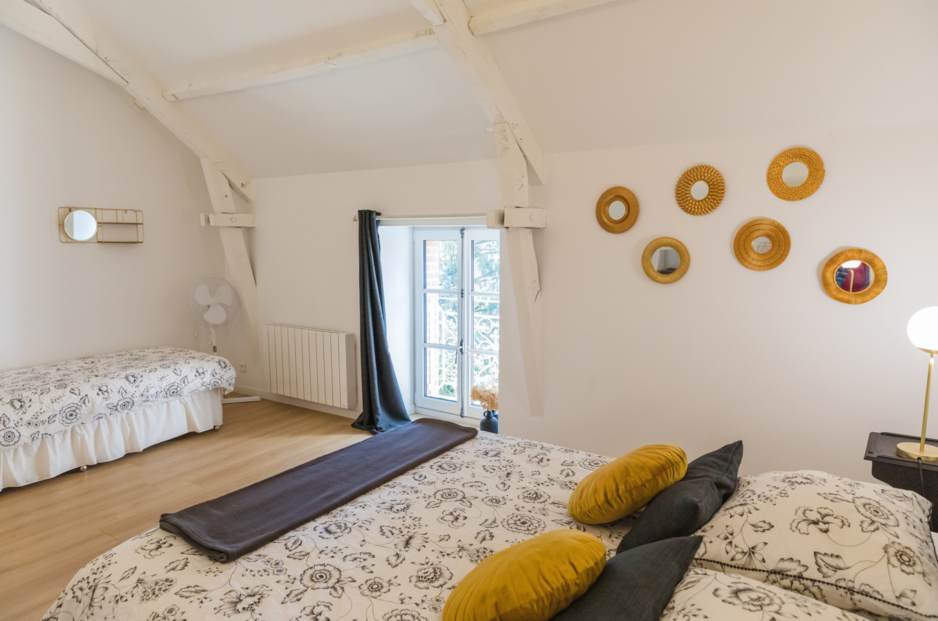 L'escalier mène au 1er étage composé d'un palier, de 4 grandes chambres dont une avec salle d'eau et wc, ainsi qu'une salle d'eau commune avec 2 douches privées et un wc séparé.