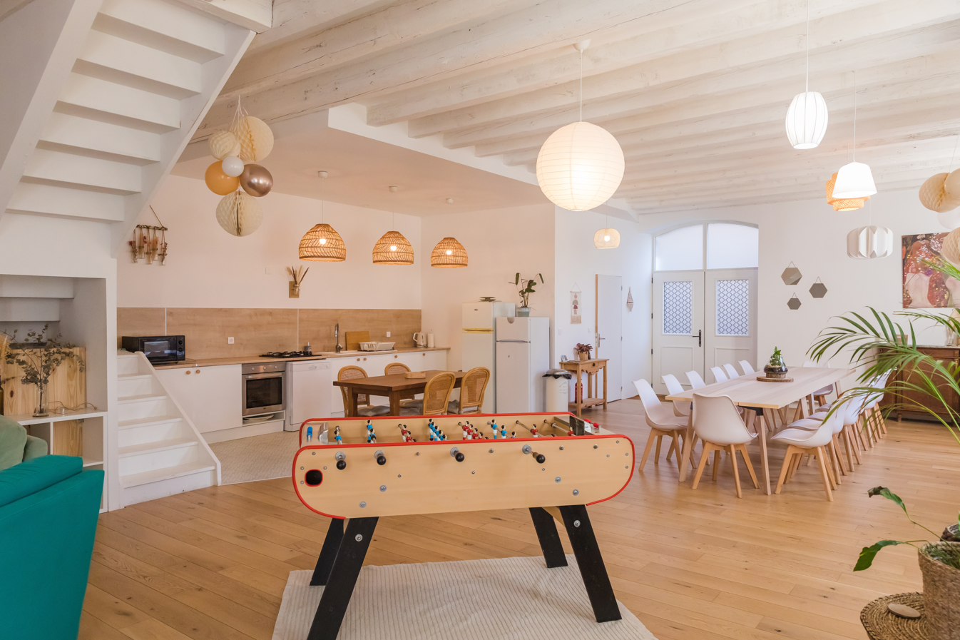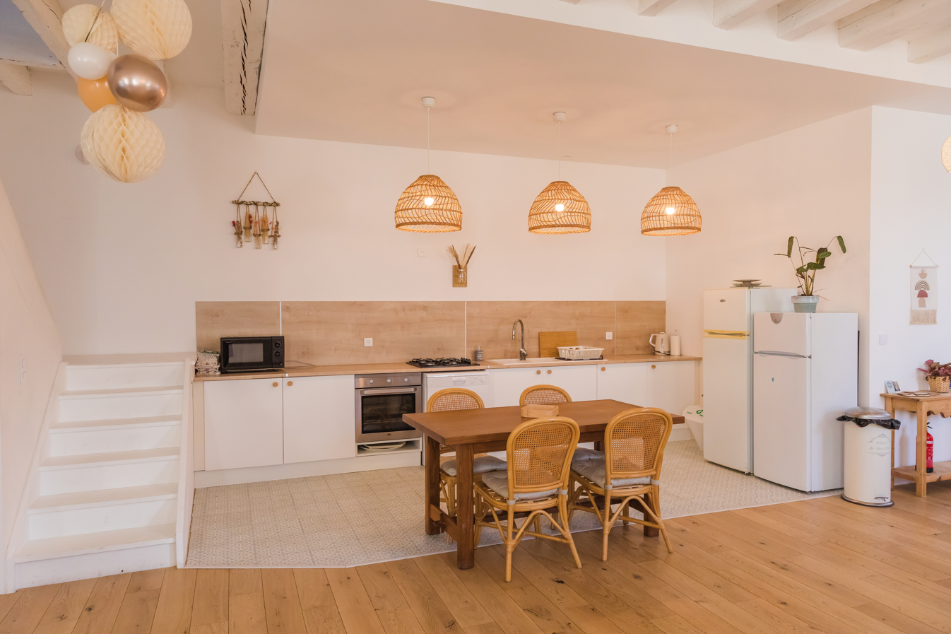 Le rdc est composé d'une grande pièce de vie d'environ 100m2 avec cuisine ouverte aménagée et équipée,