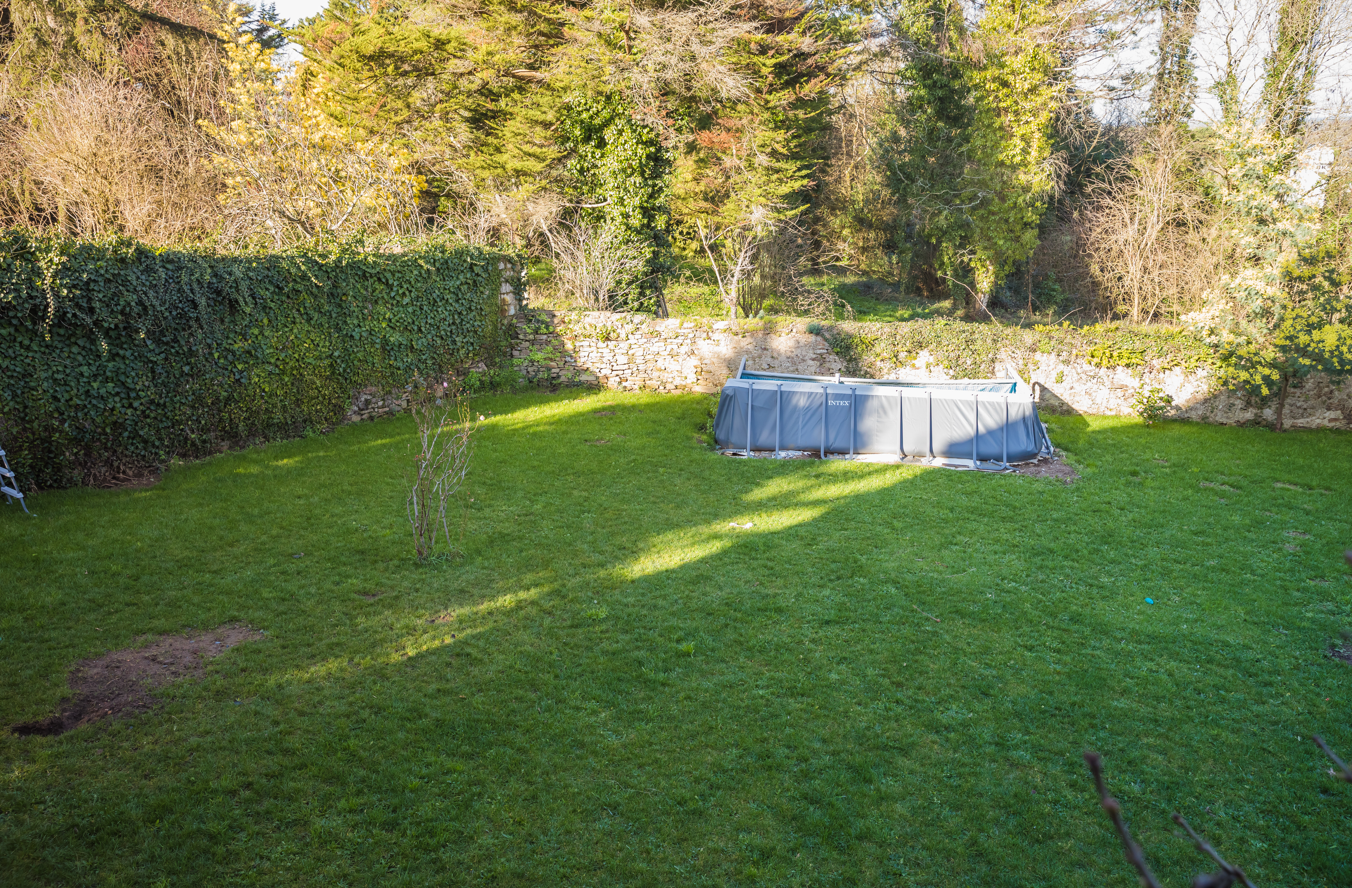 Le jardin est en contre bas d'environ 400m2 clos de murs en pierre et balustrades.