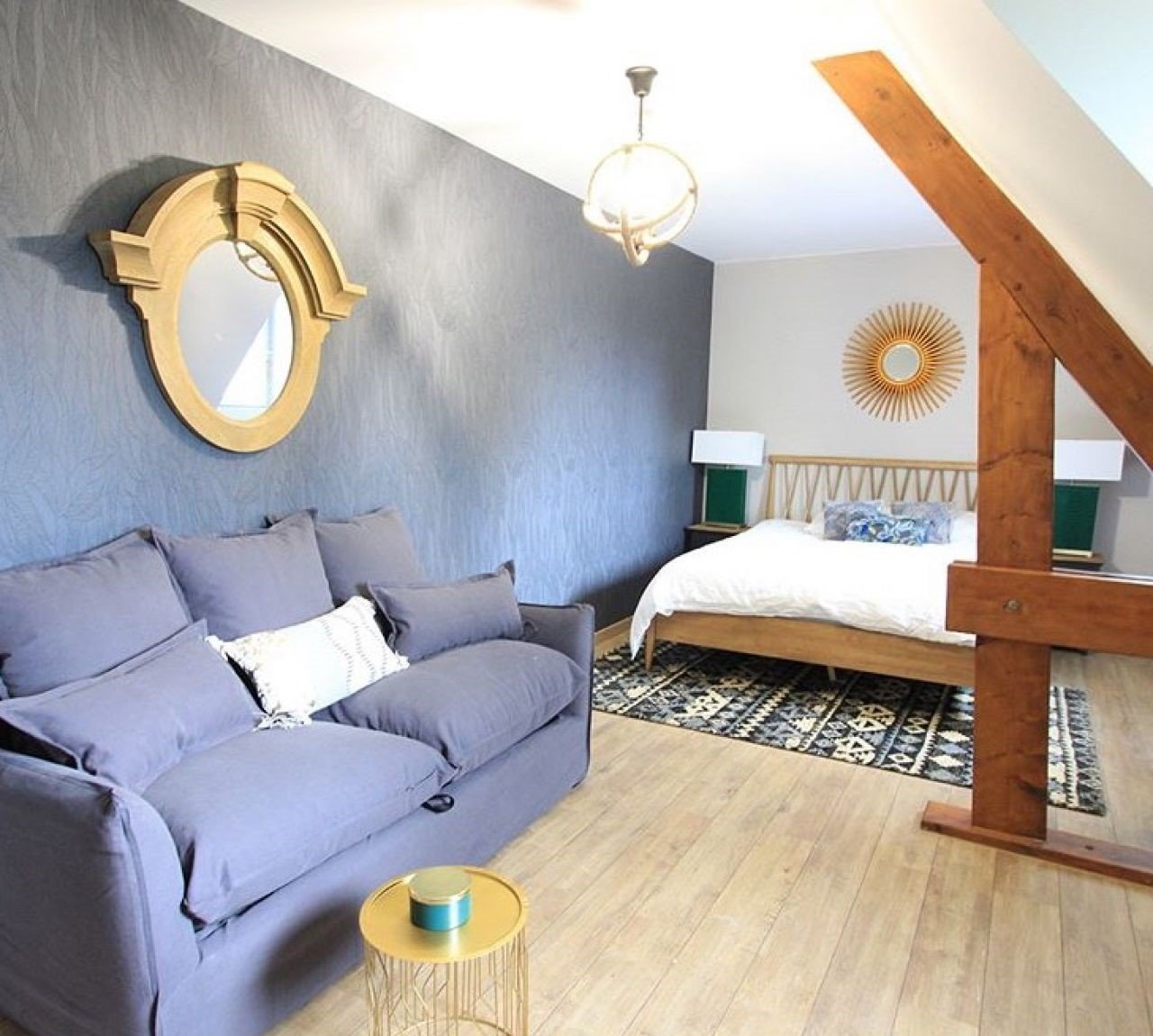 - une pièce principale avec plafond cathédrale 8 m