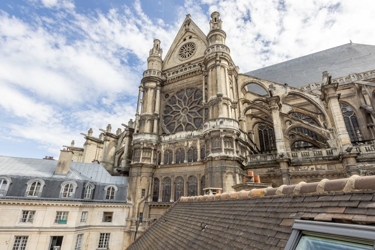 Cette chambre offre une vue directe sur la cathédrale Saint-Eustache.