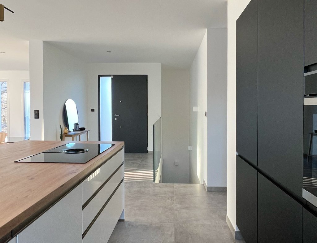 - la cuisine est entièrement ouverte avec grand îlot central.