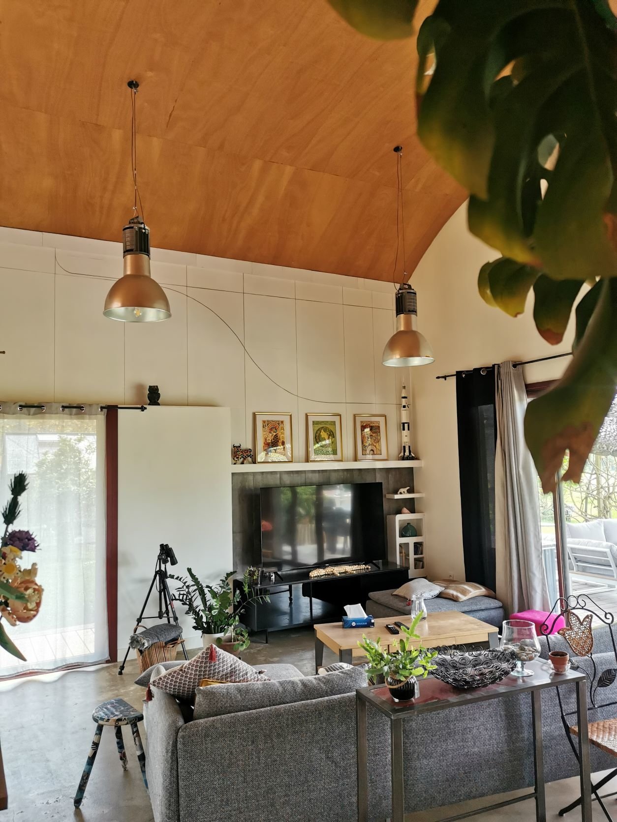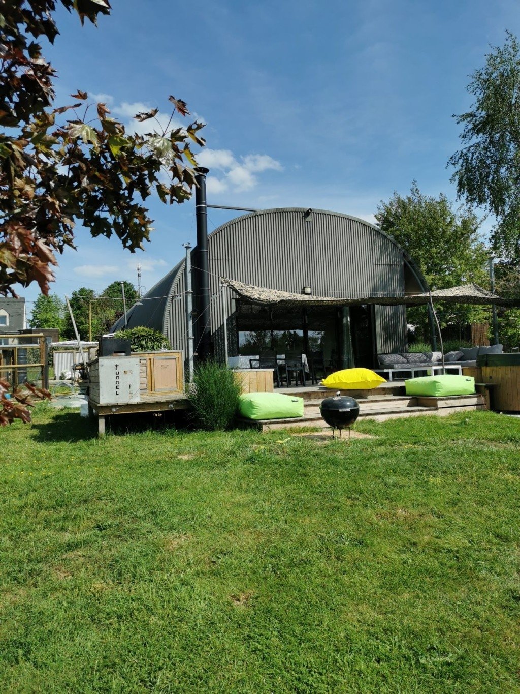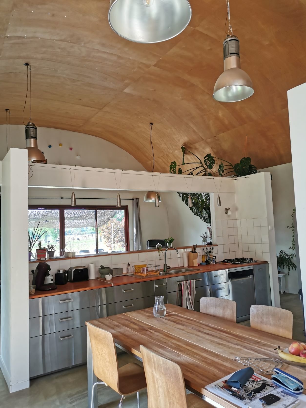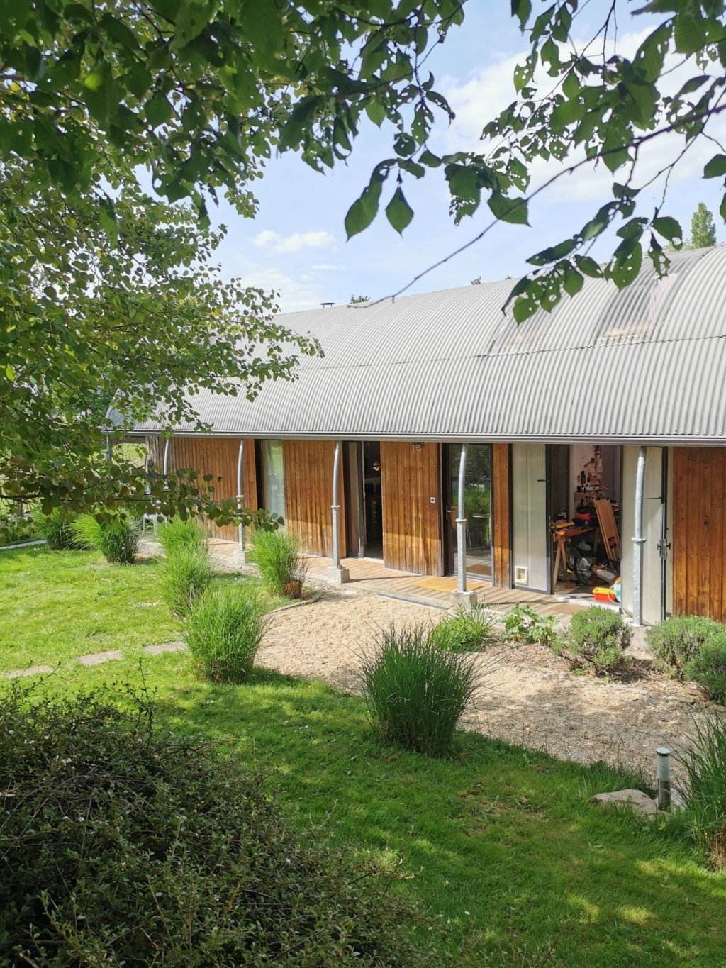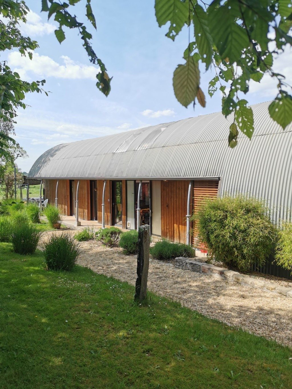 Maison contemporaine construite dans l'esprit d'un loft, en forme de Tunnel, le bardage est en métal et en bois.