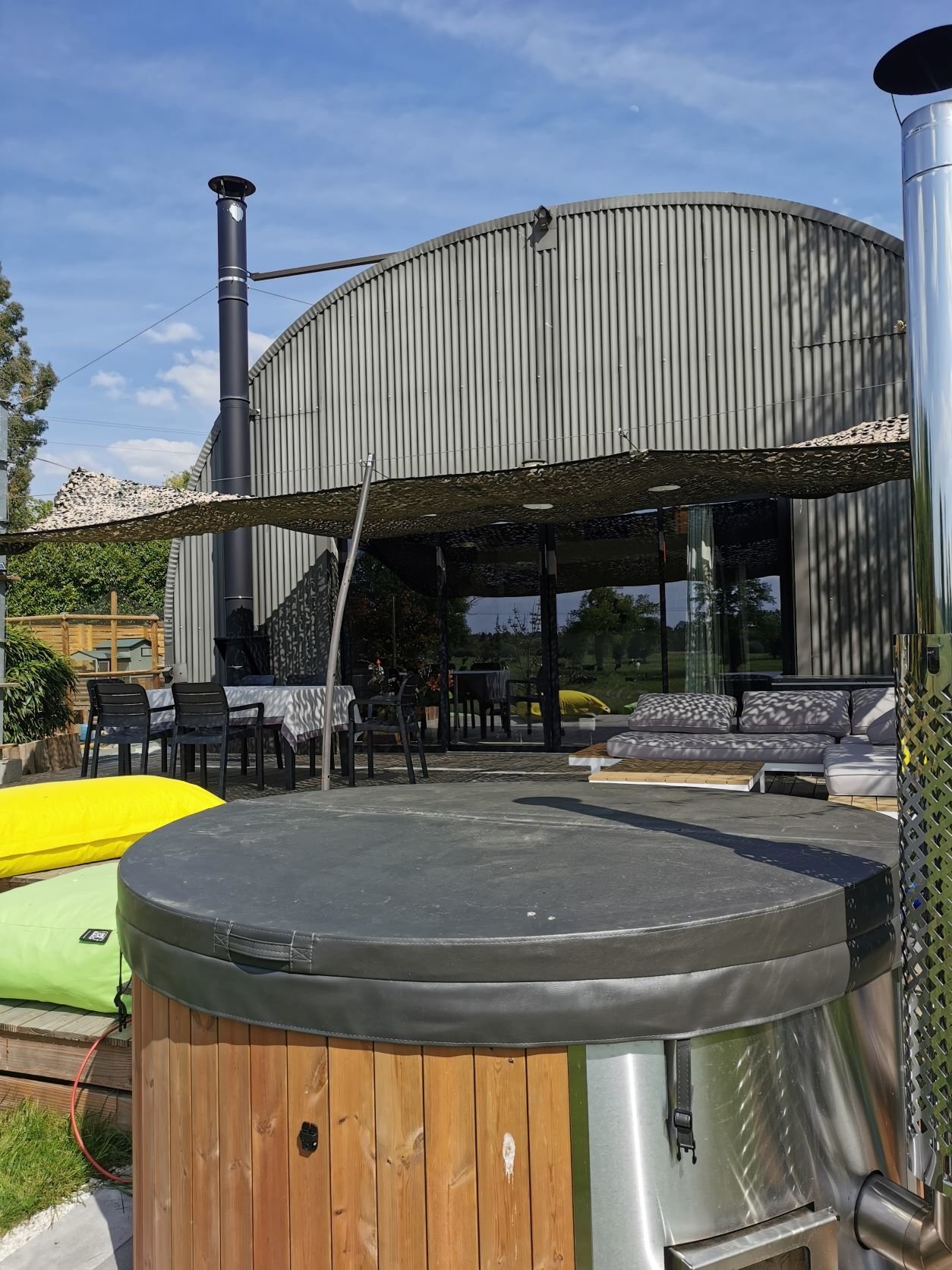 - une terrasse en bois de 50 m2 avec cuisine d'été et bain nordique,