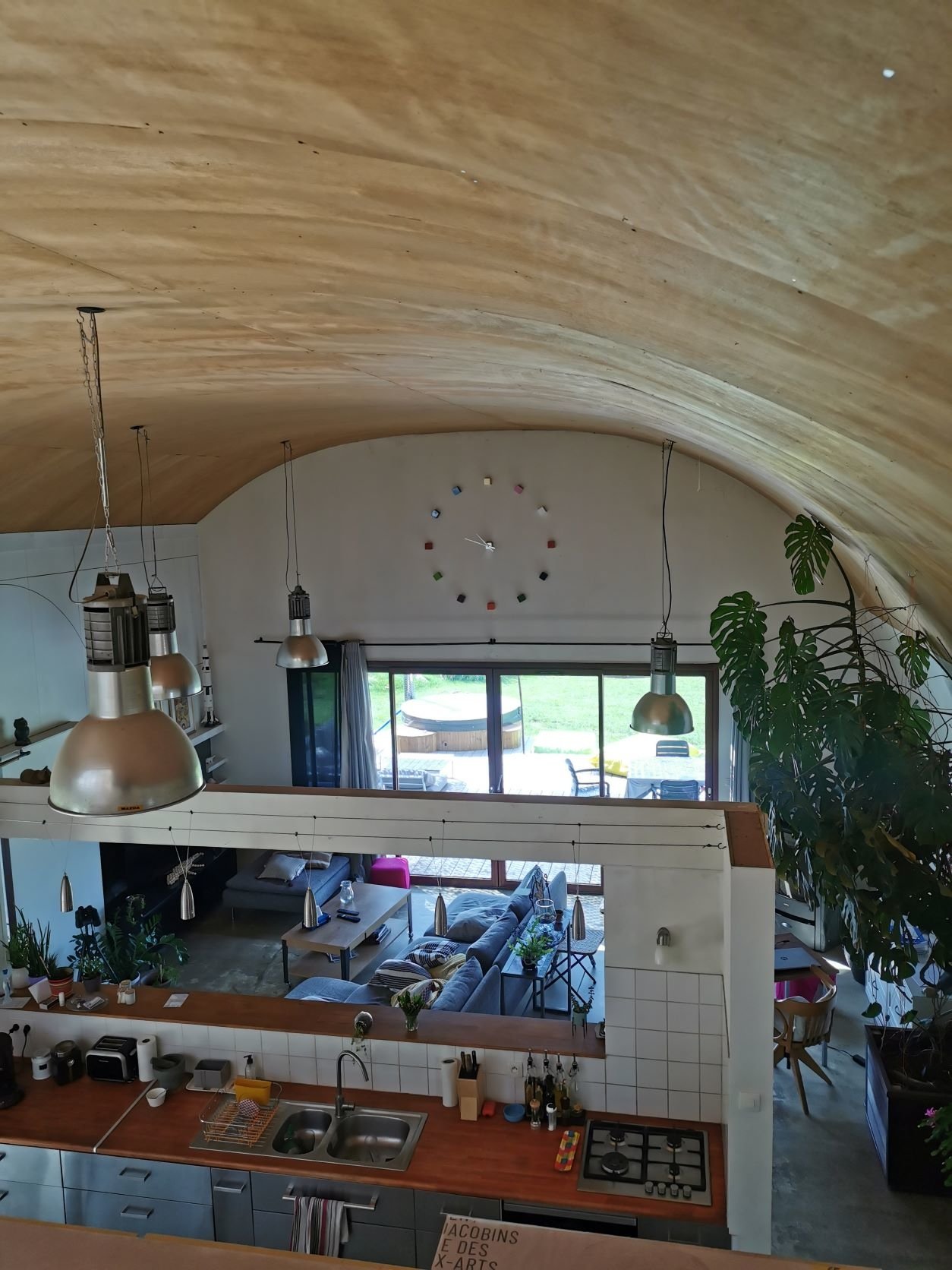 - séjour et cuisine séparés par un bar de 4m de long. Hauteur sous plafond de 4.5 m.