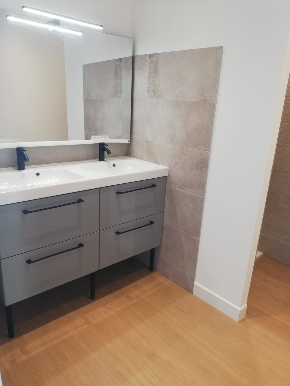 - une salle d’eau avec douche à l’italienne et double vasque et un wc séparé.