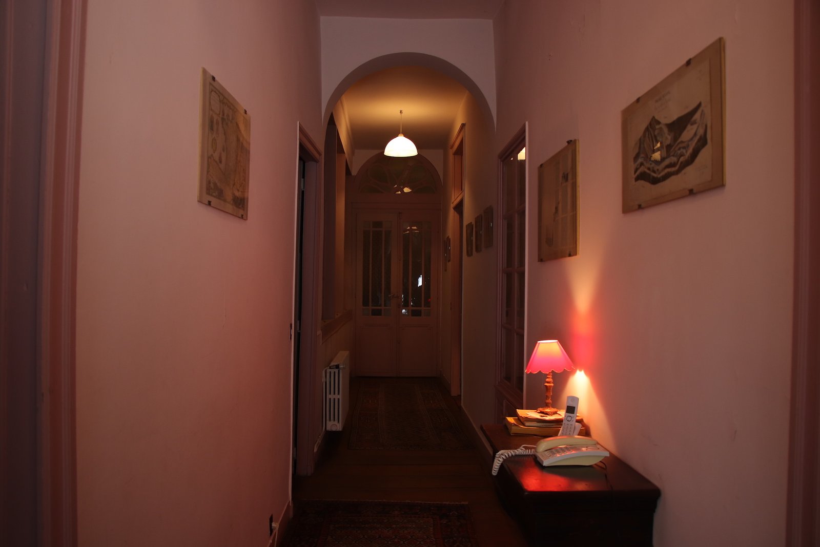 - un grand palier, avec un piano (h.s.) et une fresque au plafond