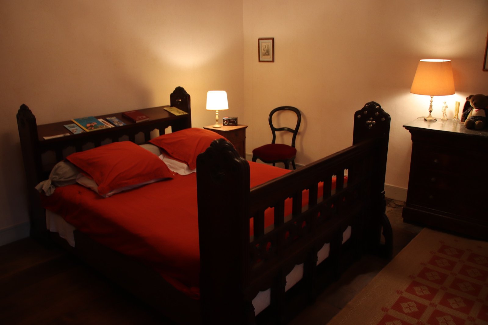 - une chambre "bleue" (tapisserie, moquette, draperie)