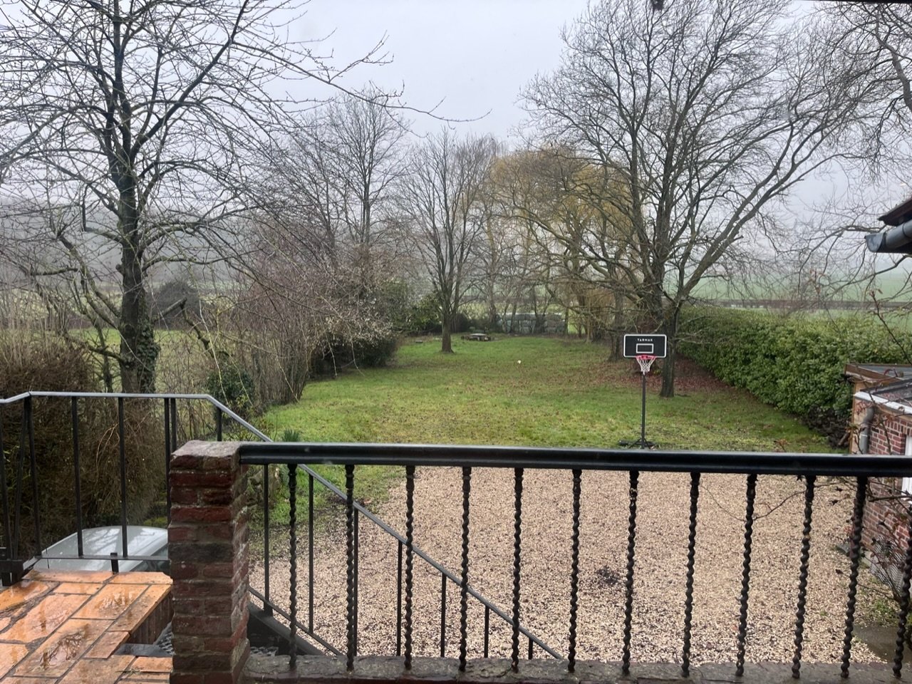 Vue champs et jardin. Arbres.