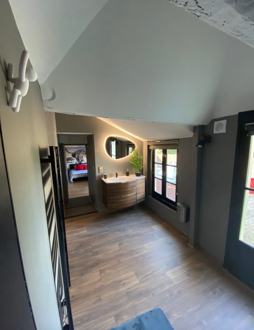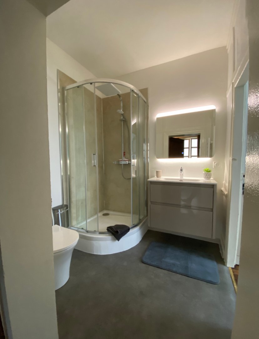 - Petite salle d’eau avec cabine de douche