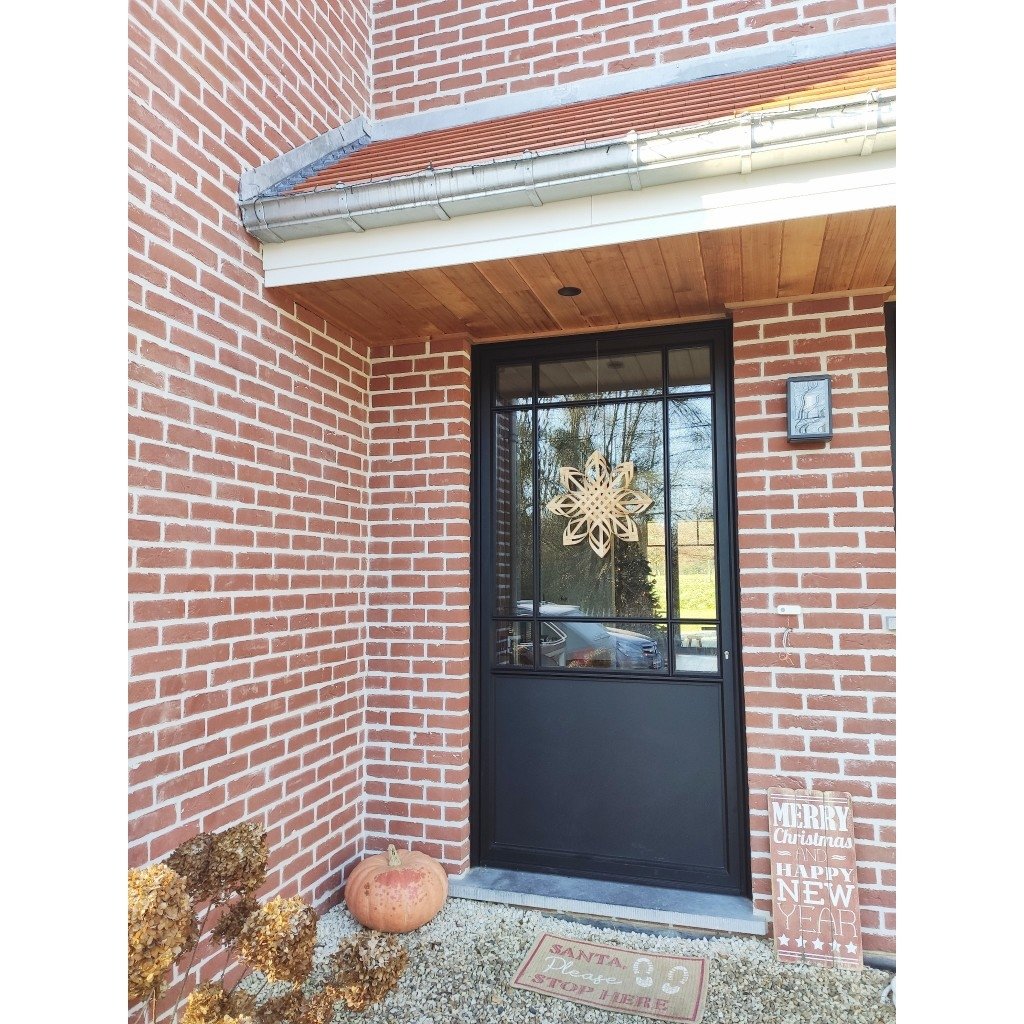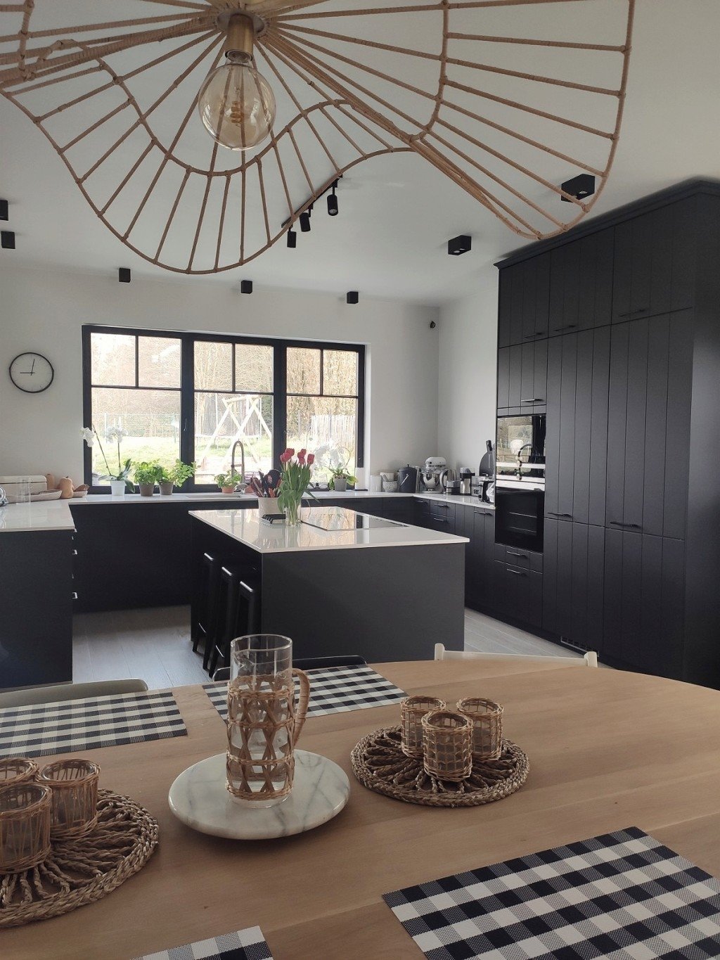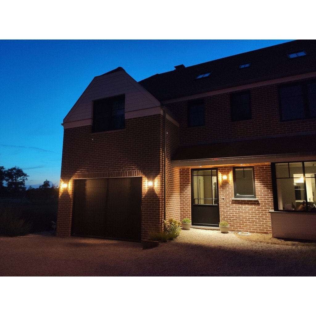 Maison nouvelle avec un mélange de charme à l'ancienne et de modernité. Plafonds hauts. Châssis noirs type atelier, matériaux et décoration de goût.